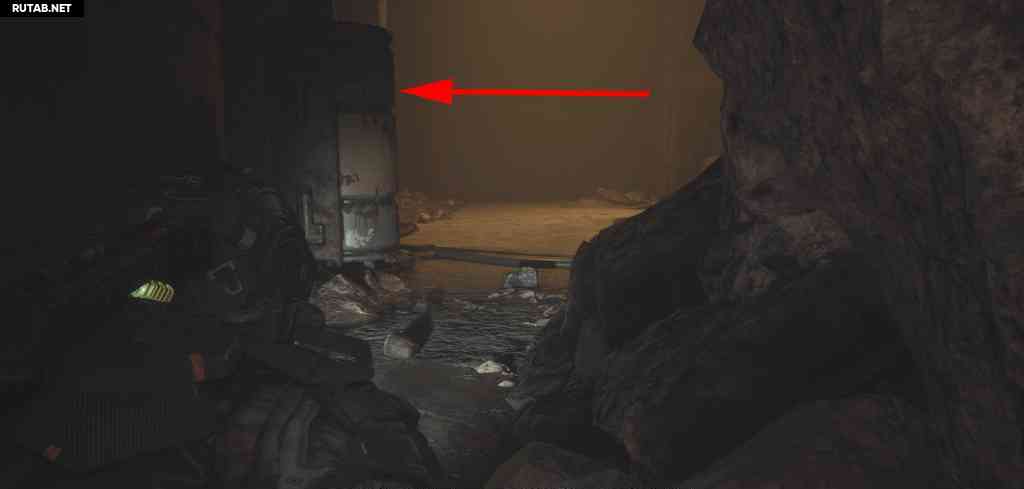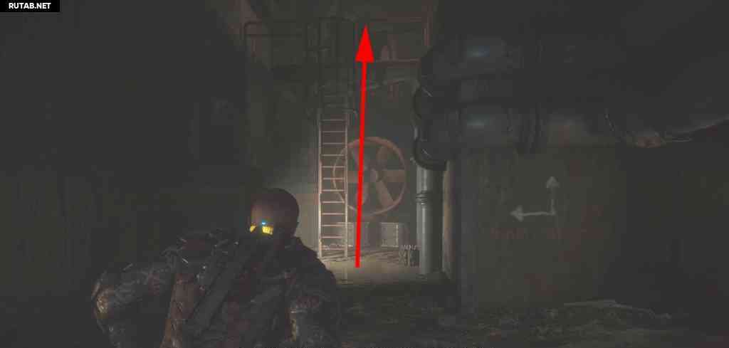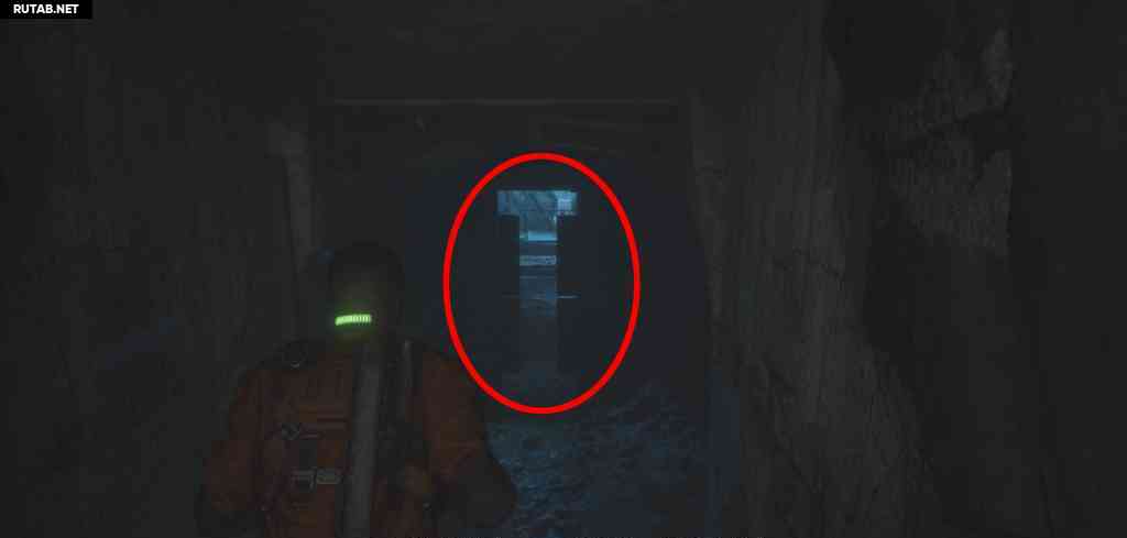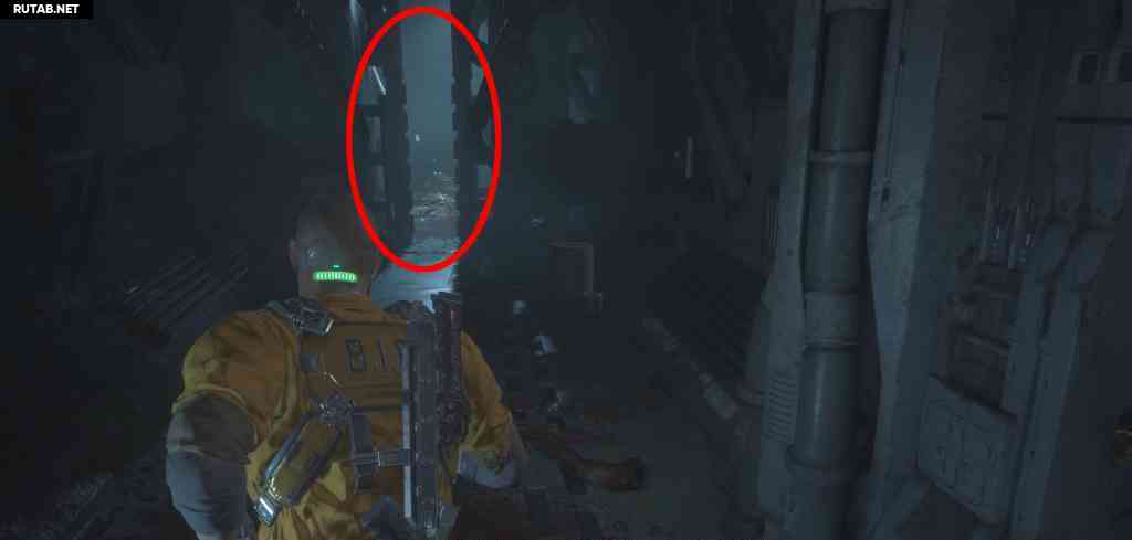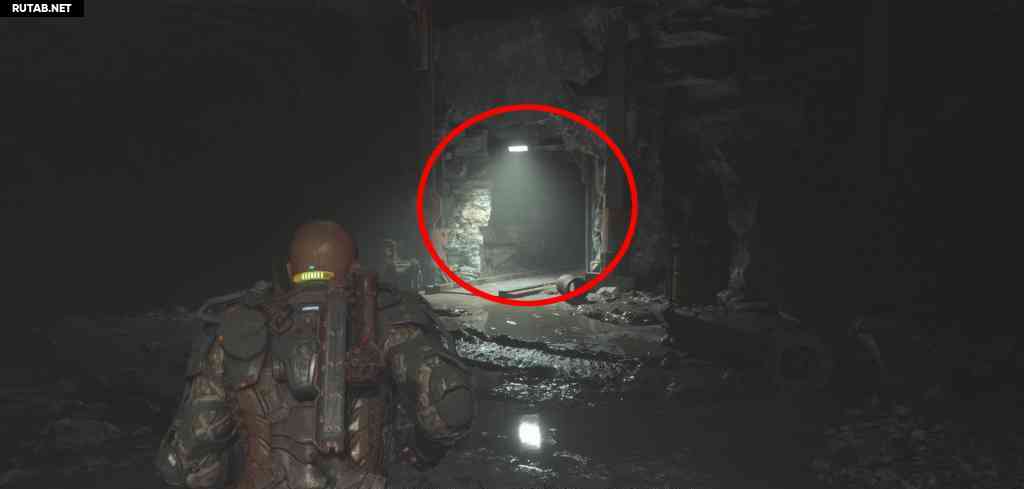 После встречи с плеваком и ползающими по земле врагами, у которых отрезаны ноги, вы должны протиснуться через щель и подняться по лестнице. После лестницы, прямо вперед, вы можете протиснуться между камнями, а справа находится энергетический реактор. Протиснитесь между камнями прямо вперед (пока не входите в комнату с реактором).