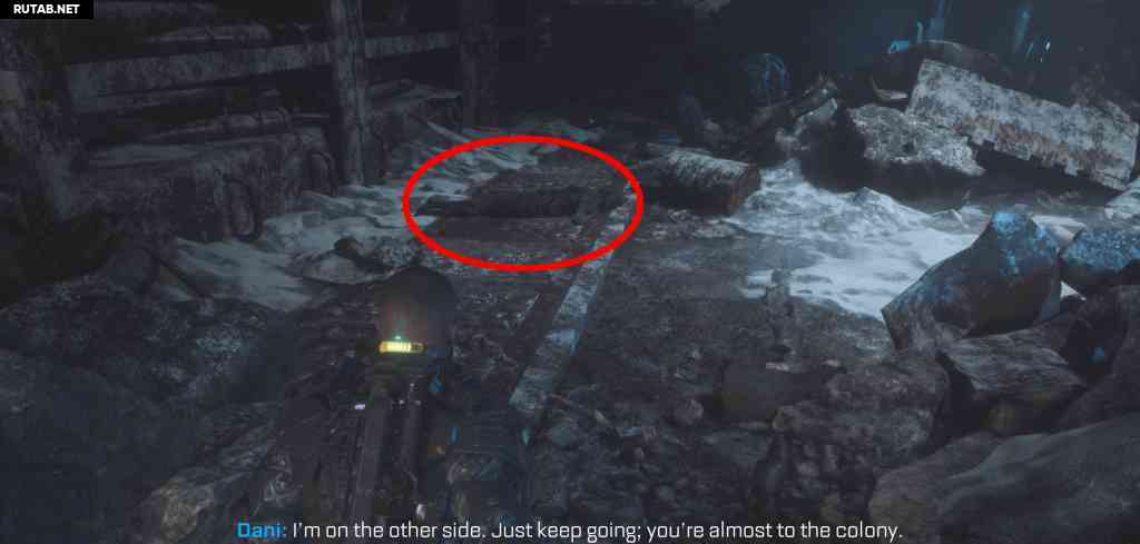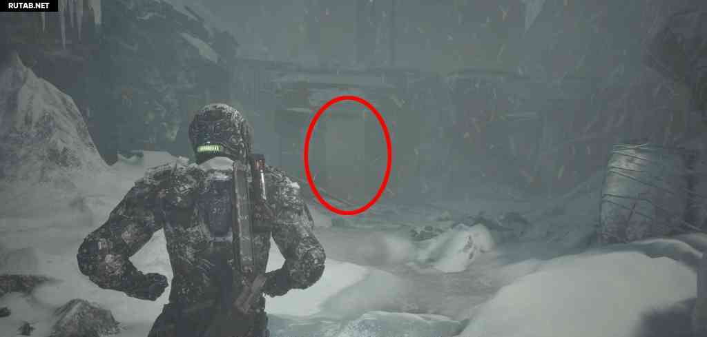 Вскоре после предыдущего коллекционного предмета вы идете по снегу, а затем через щель, чтобы войти в ангар с Дэни. С правой стороны ангара осмотрите заднюю часть транспорта, чтобы найти труп.