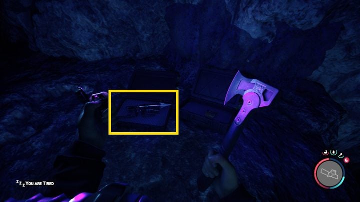 Оказавшись внутри, вы должны взорвать существо, блокирующее проход внутрь. Вы можете сделать это с помощью C4, лежащего поблизости, или с помощью гранаты (за это вы разблокируете достижение PINATA). Предмет находится в ящике в самом конце локации. Его использование необходимо, чтобы покинуть это место, так что вы не пропустите его.