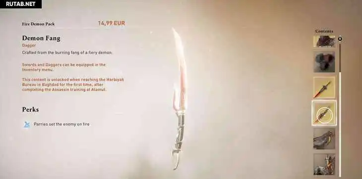 - Местонахождение: куплено в DLC Fire Demon Pack.