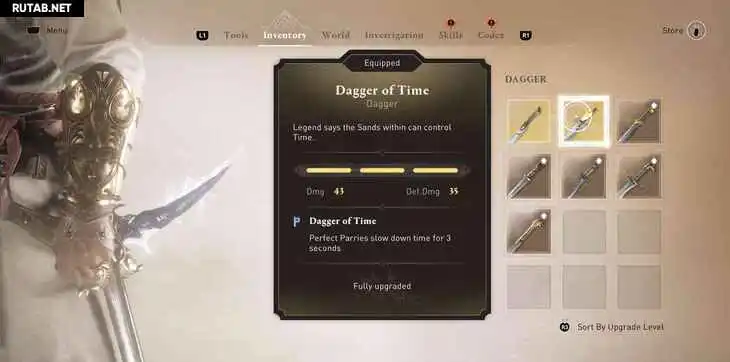 - Перк: Кинжал времени — идеальное парирование замедляет время на 3 секунды.