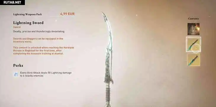 - Местонахождение: куплено в DLC Lightning Weapons Pack.