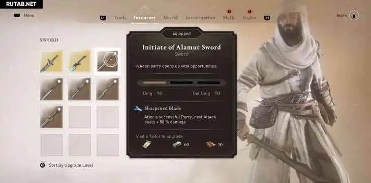 - Перк: Заточенное лезвие — после успешного парирования следующая атака наносит больше урона.