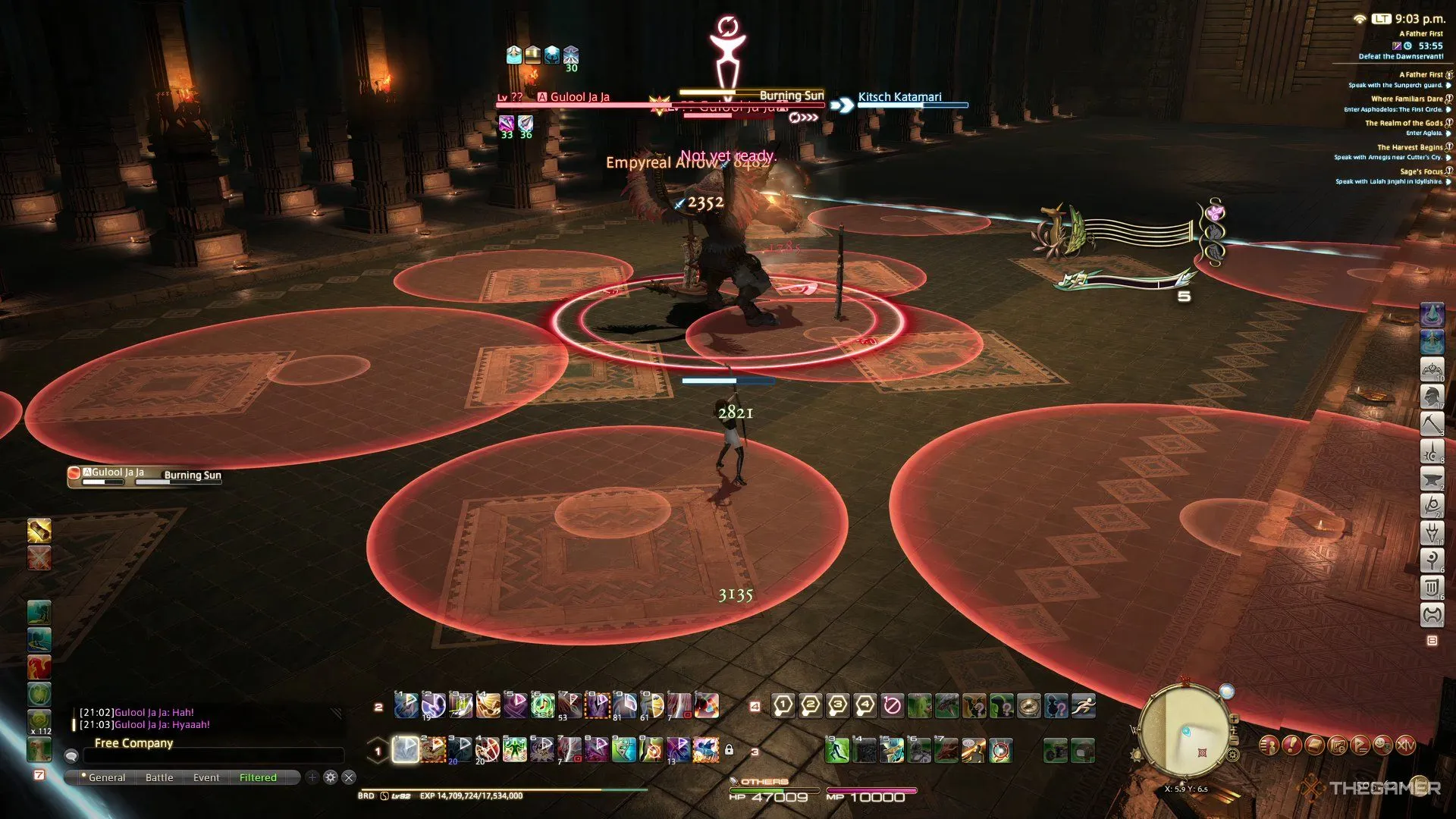 Гулюл Джа Джа откроется теми же несколькими ходами. Следите за маркерами AoE и двигайтесь по мере необходимости (выше есть описание каждой атаки и указано, на что следует обратить внимание).
