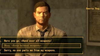 Спутников игрока необходимо уволить перед запуском Old World Blues, поскольку только персонажу игрока разрешен вход в зону DLC.