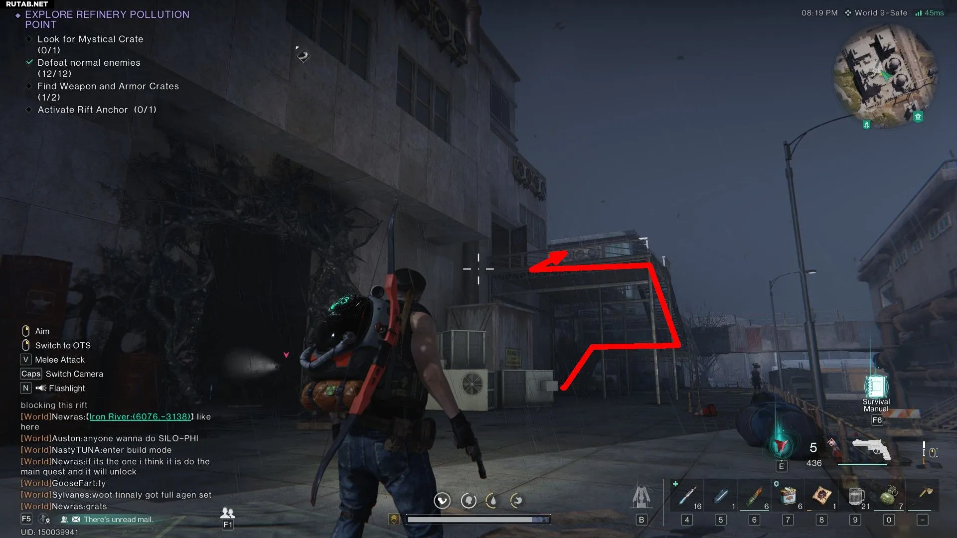 Как уже было отмечено, якорь разлома точки загрязнения нефтеперерабатывающего завода находится на вершине здания в юго-западном углу локации, и вот как до него добраться: