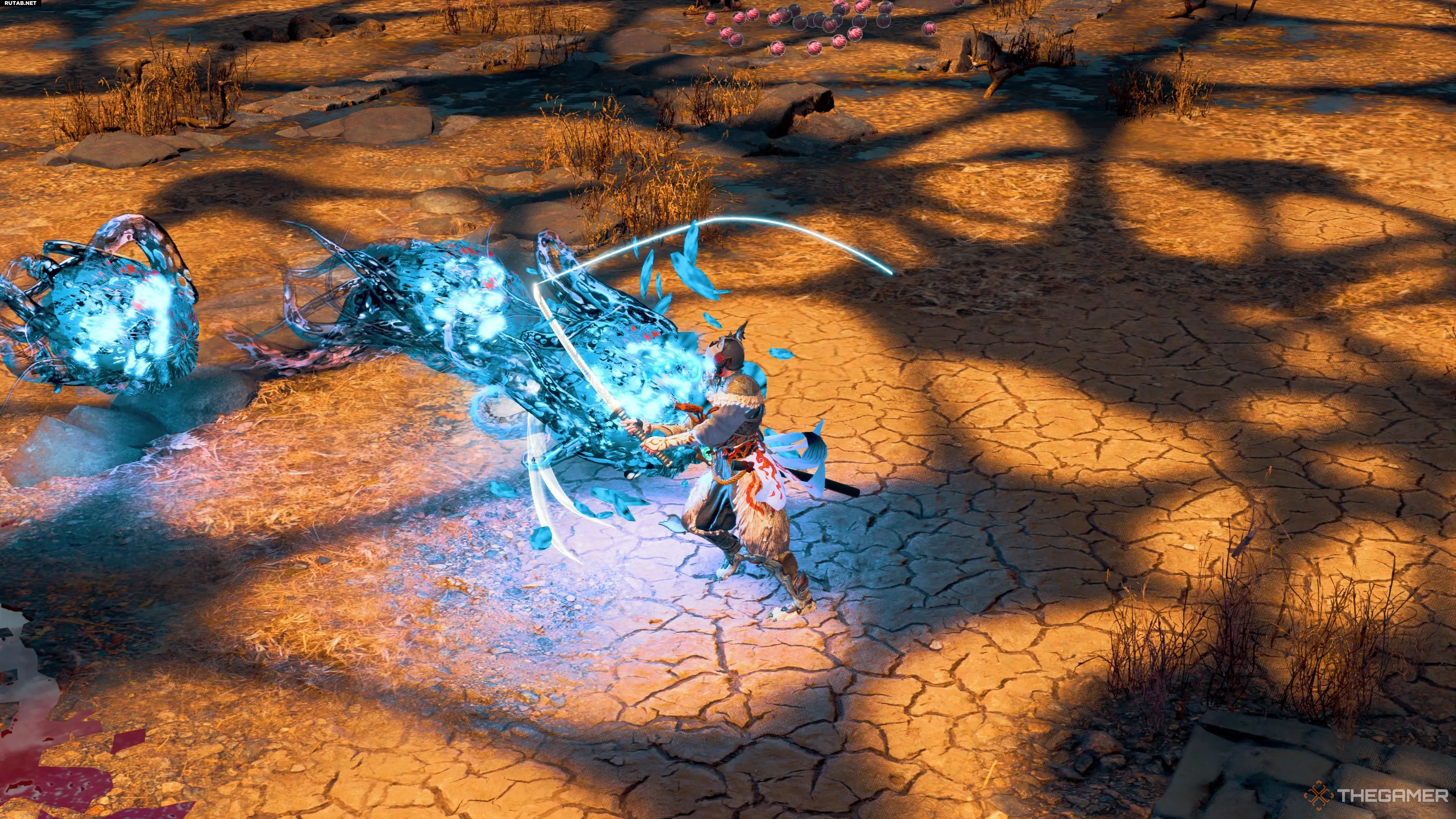 Время от времени Батсу будет стрелять медленно движущимися огненными шарами, которые преследуют вас. К счастью, вы можете рассеять их, напав на них до того, как они ударят вас. Его большой ход — это гигантский топот, из-за которого камни под вашими ногами выступают наружу и заставляют вас двигаться медленно, пока вы находитесь в зоне поражения. Однако, если вы используете окончательную форму своей танцевальной атаки Ока, комбо поможет вам покинуть зону поражения. Наконец, Батсу будет дышать пламенем, медленно поворачиваясь. Эта атака заставит это огромное чудовище двигаться довольно медленно, что даст вам много времени, чтобы атаковать его в спину.