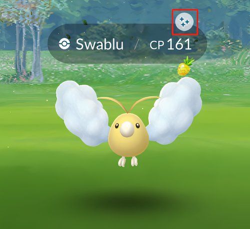 Помимо изменения цвета, вы сможете определить, является ли покемон в Pokemon GO блестящим, проверив небольшой блестящий значок над номером CP, как на картинке Swablu ниже: