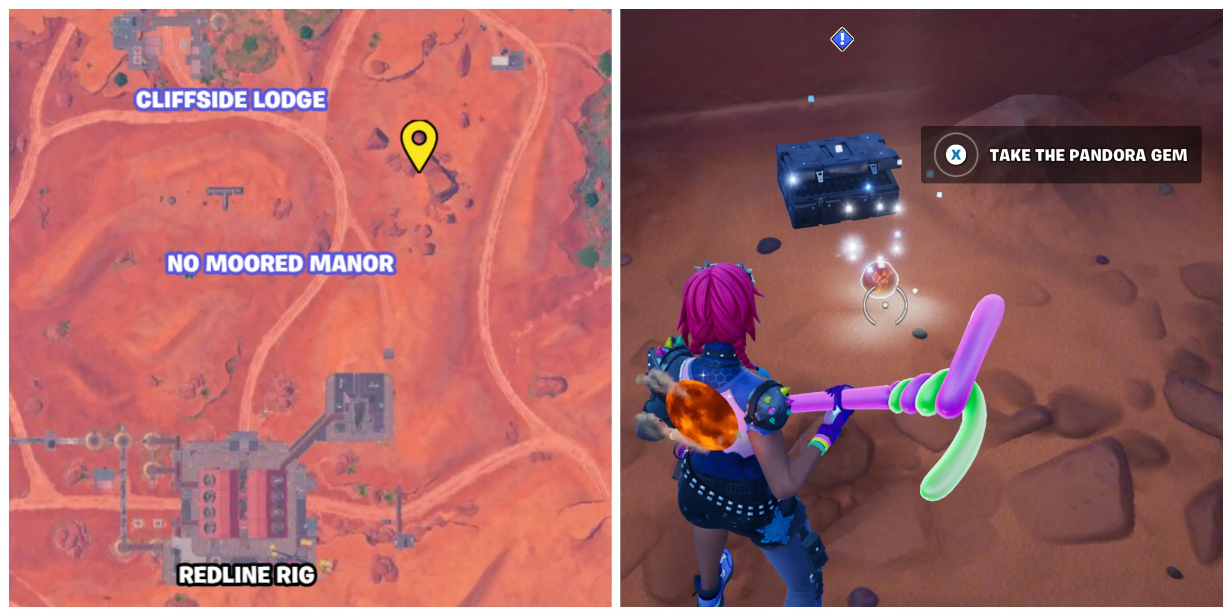 | Отправляйтесь в тайник Мегало Дона и найдите драгоценный камень Пандоры. | Мегало Дон спрятал драгоценный камень Пандоры возле набора высоких камней, расположенных между Cliffside Lodge и No Moored Manor. |