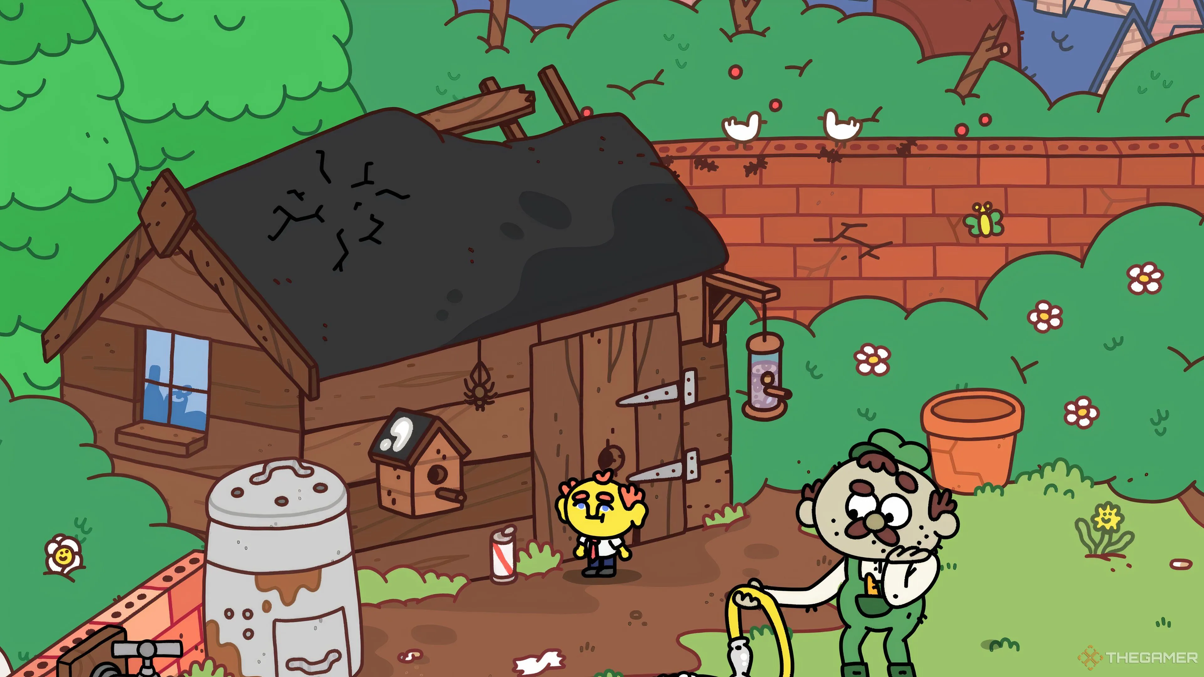 Попадание в сад происходит после того , как мужчина упал в дымоход, заполнил его дом сажей, а затем выпрыгнул из окна. Познакомьтесь с этим маршрутом прямо сейчас , потому что вы будете повторять его несколько раз на протяжении всей игры.