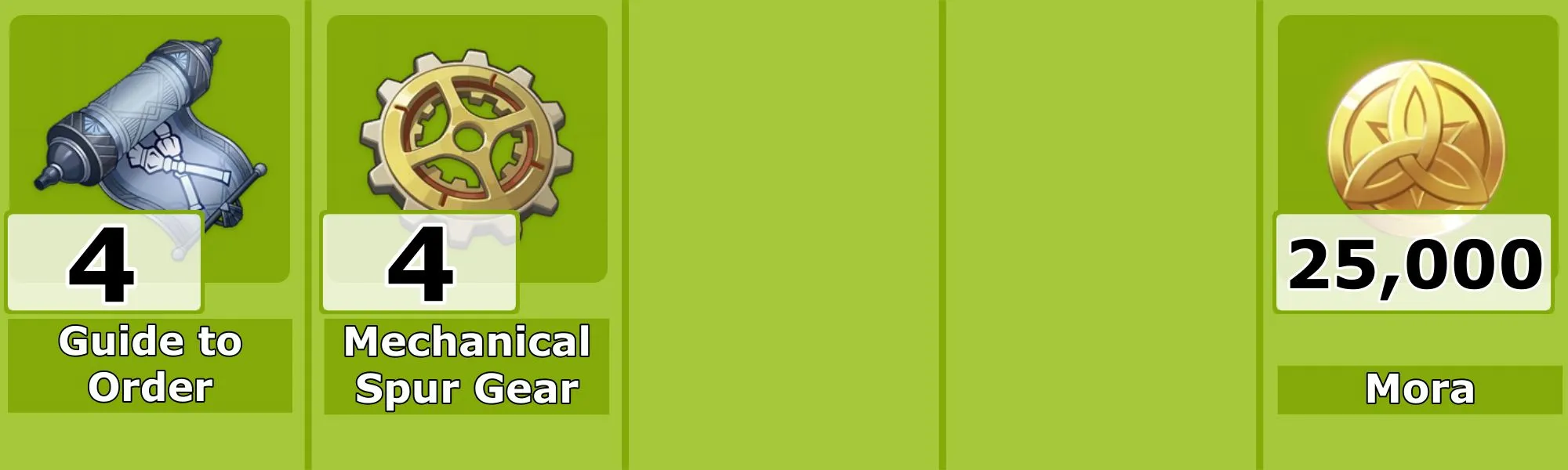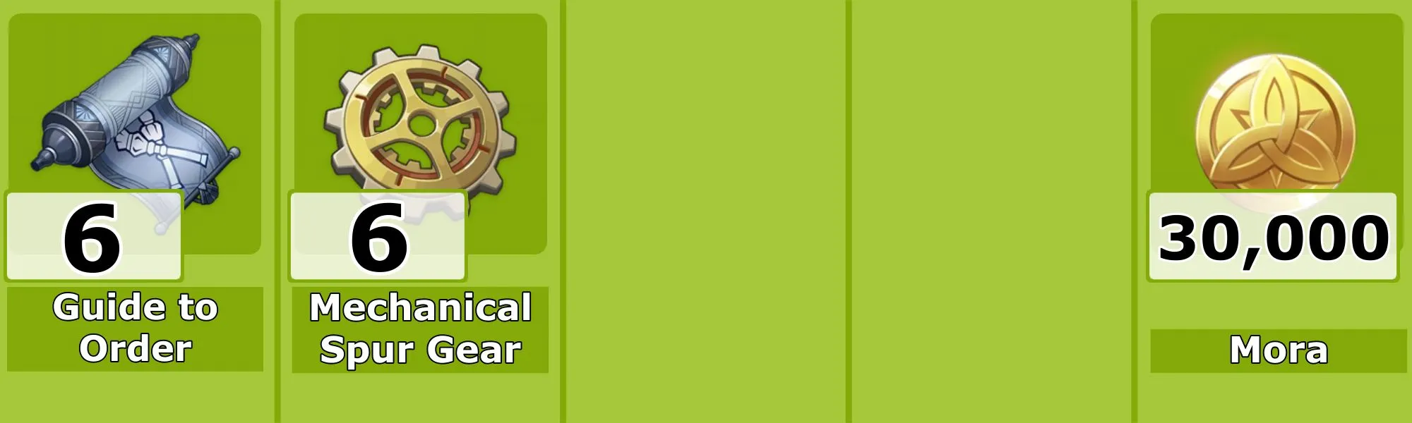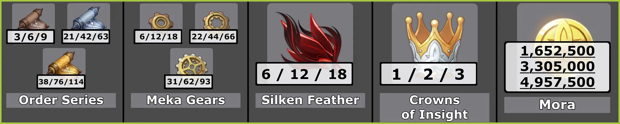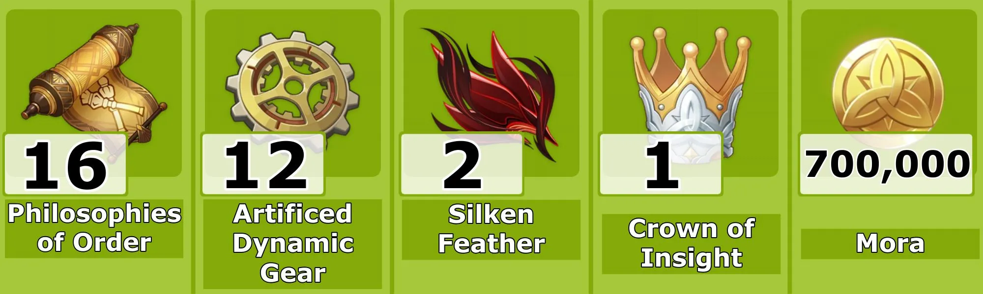 | 6-7 | 4x Философии порядка | 4 искусственных динамических механизма | 1x шелковое перо | - | 120 000 |