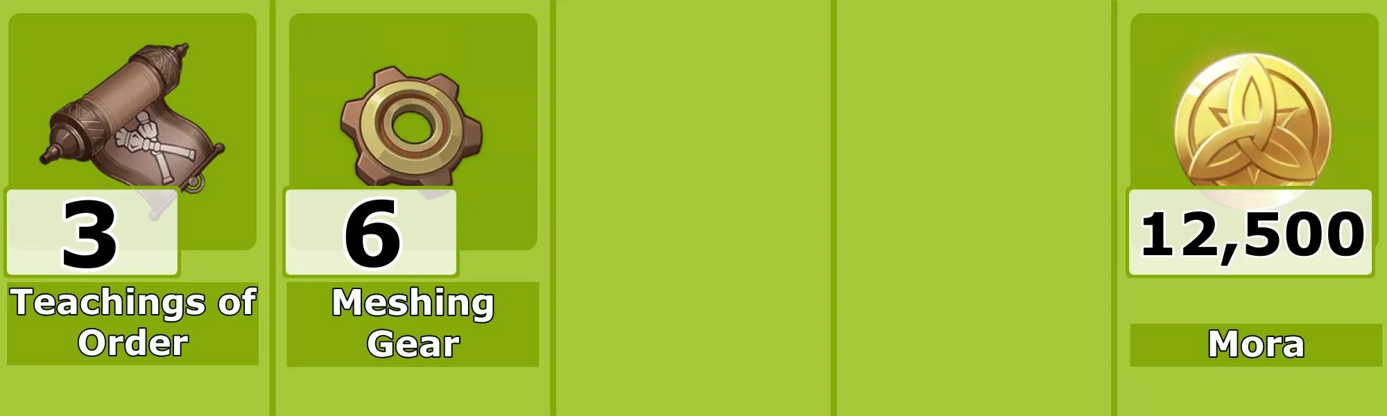 | 1-2 | 3x Учения порядка | 6x зацепляющаяся шестерня | - | - | 12 500 |