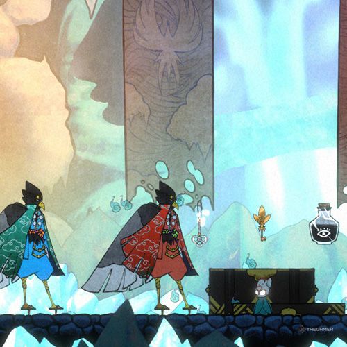 ![]() | ![]() | Встретьтесь с Моро на горе Мегуми. Затем изучите способность «Моти-молот» в Кицунэ-Нороуз. Вернитесь на гору Мегуми и используйте молоток Моти, чтобы войти в Ледяные пещеры. Найдите там обоих детей Моро. Обнаружив их, вернитесь на гору Мегуми и поговорите с Моро. Он отблагодарит вас чернилами в качестве награды. |
