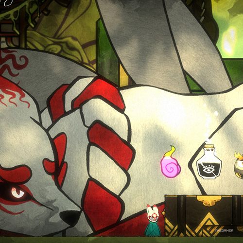 ![]() | ![]() | Получив Крюк, отправляйтесь на север леса Мидори. По мере прохождения вам нужно будет преодолевать препятствия, преграждающие путь группе невест. Преодолев все препятствия, вы сразитесь с боссом по имени Кицури. После победы над этим боссом вы получите эти чернила из полученного сундука. |
