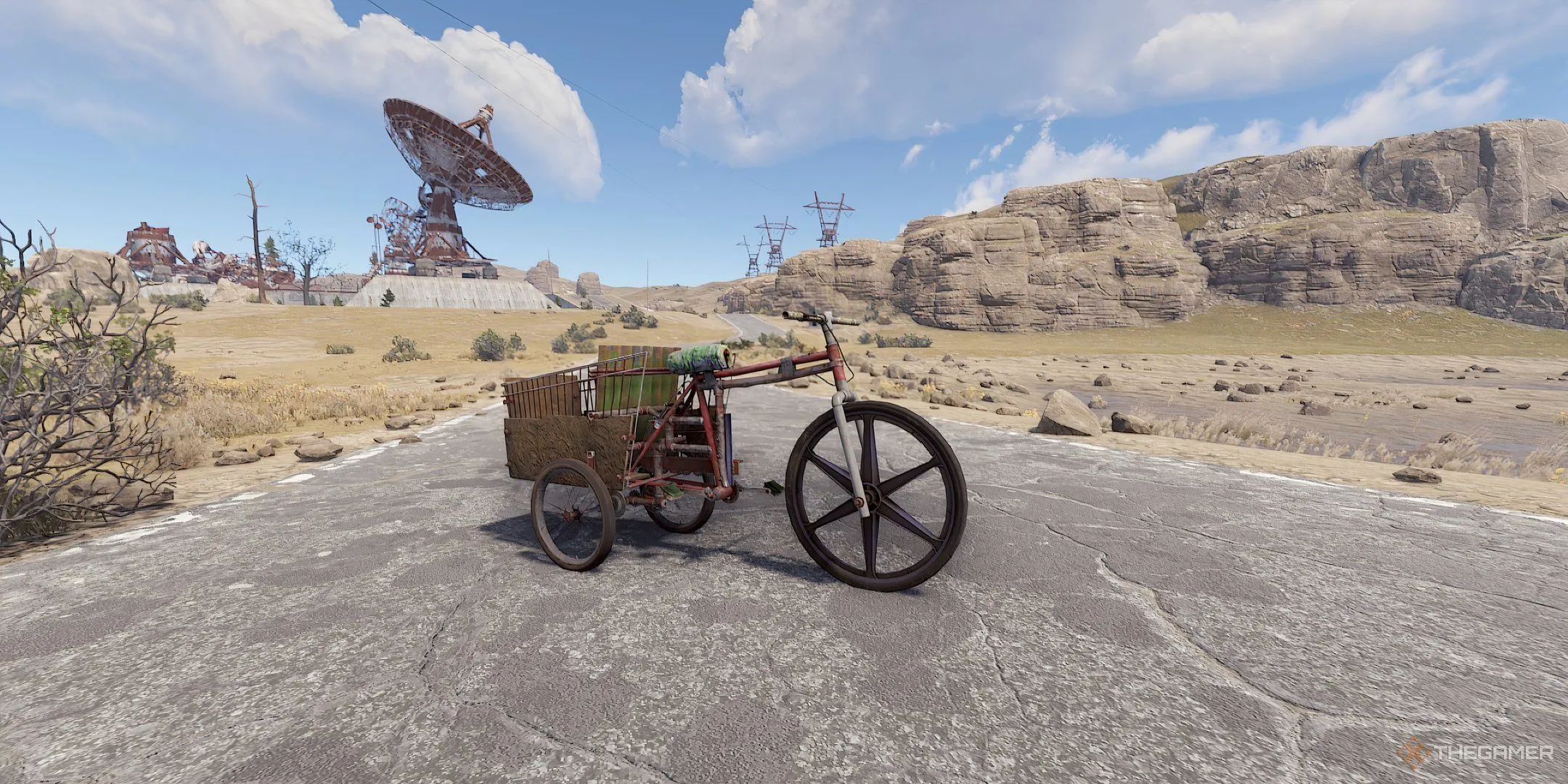 На карте Rust можно найти два велосипеда: велосипед и трехколесный велосипед. Велосипед вмещает одного человека и развивает скорость, в два раза превышающую скорость бега пешком. Трехколесный велосипед развивает ту же скорость и может вместить еще одного человека, но жертвует некоторой управляемостью.