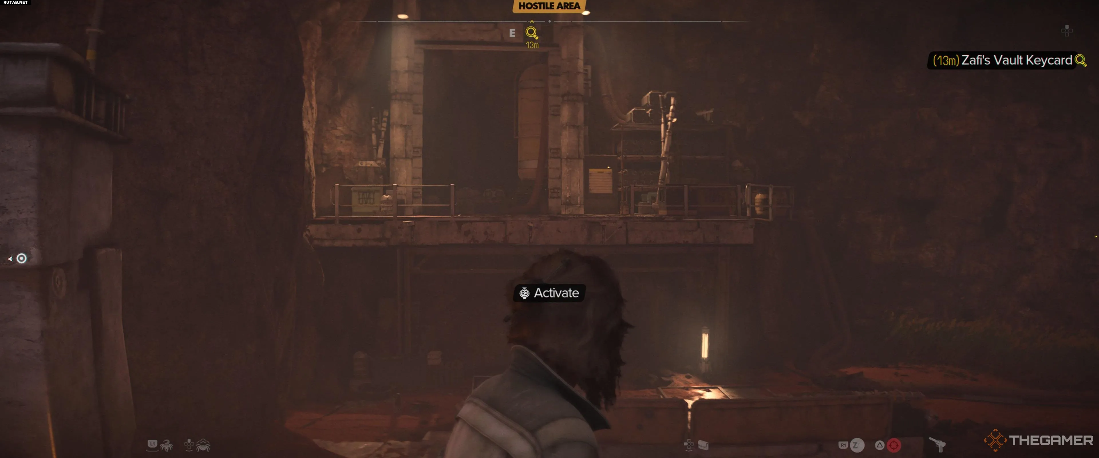 Проберитесь в пещеру и уничтожьте похитителей кораблей внутри. Как только область будет очищена, поднимитесь на верхний уровень и найдите переключатель напротив красного энергетического барьера. Он активирует кран, но вам нужно будет деактивировать барьер, чтобы использовать кран. Отправьте Никса открыть ставни рядом с барьером (ему понадобится некоторое время, чтобы перебраться через него, так что будьте терпеливы), затем выстрелите в конденсатор внутри. Теперь вы можете забраться на груз крана и проехать на нем в защищенную комнату, где хранится ключ-карта Зафи.