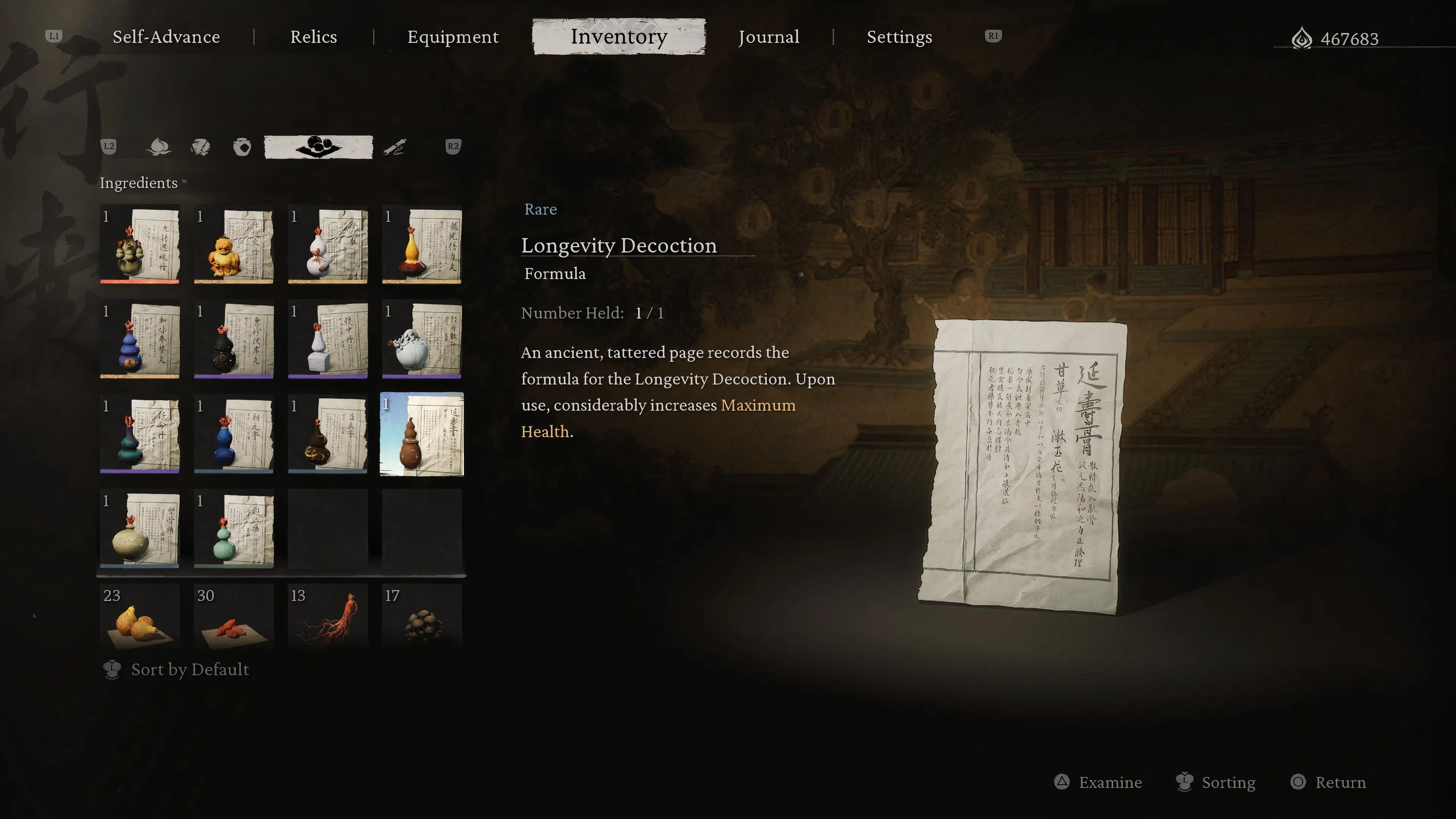 | Таблетка, спасающая жизнь | ![]() | 4 | От святилища Petalfall Hamlet Keeper's Shrine идите прямо вверх по мосту, затем по лестнице, чтобы попасть в место, где вы впервые встречаете даосского Ми. Поверните направо и в конце пути поверните налево через сторону дома. Продолжайте идти прямо вверх по мосту, чтобы добраться до дома с формулой на столе. |