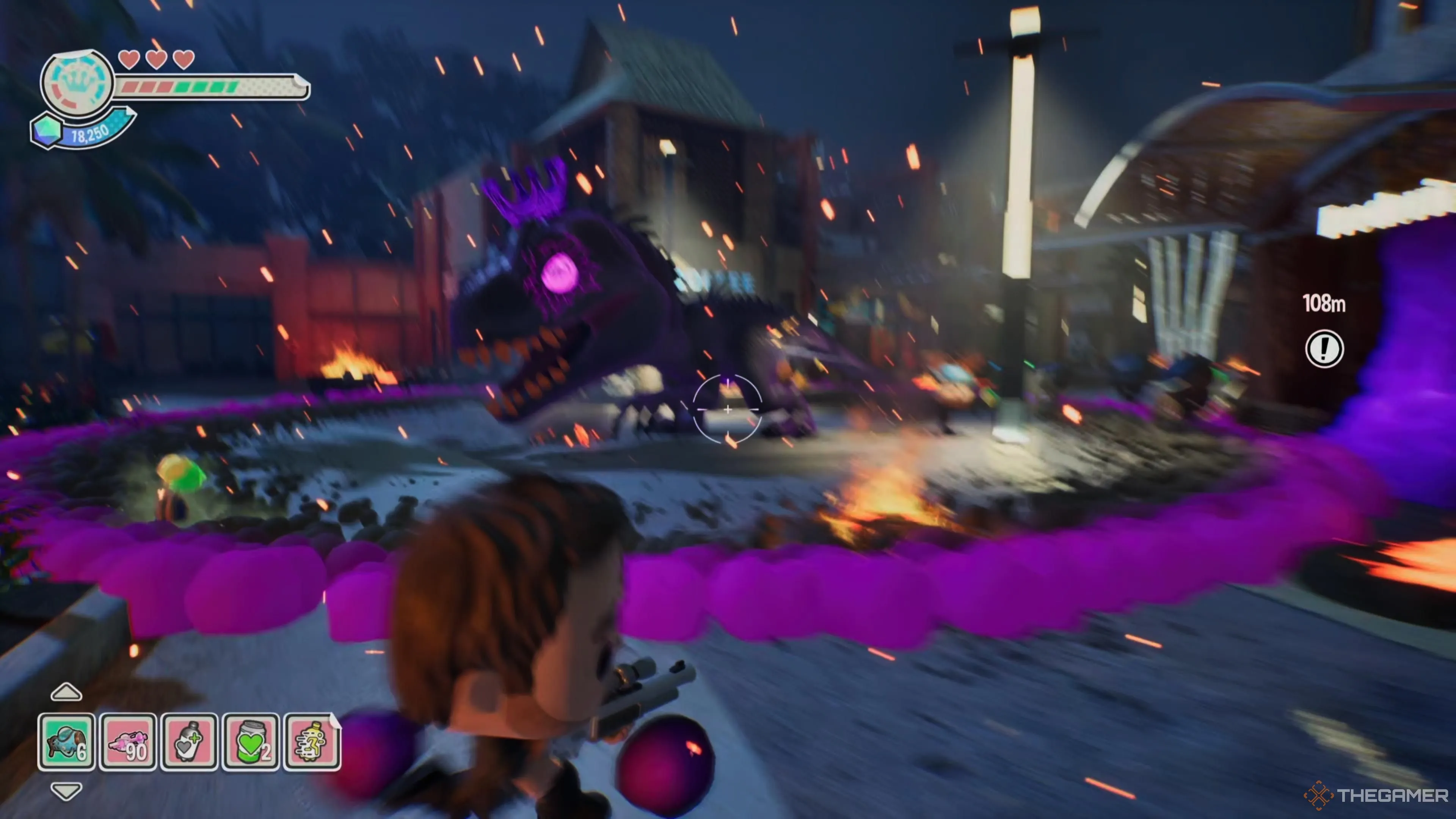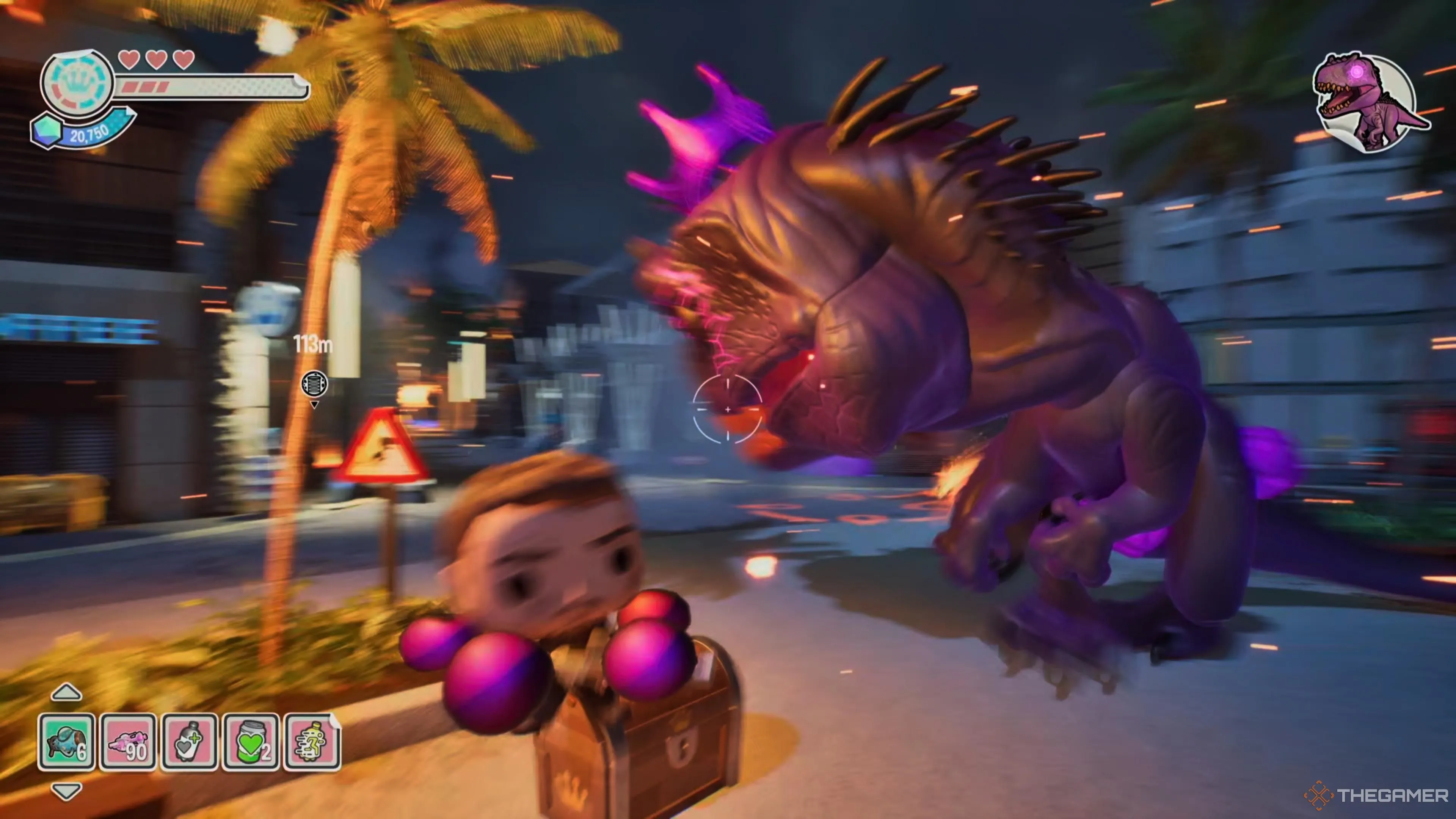 Взаимодействуйте с ним еще раз, чтобы активировать его и посмотреть короткую катсцену. Пока два динозавра нападают, вы можете стрелять в Эдди Гигантозавра в любом месте, чтобы помочь нанести урон и собрать всю валюту, которая выскакивает при каждом ударе.