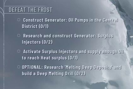 Это решение оказывает значительное влияние на задачи, которые появляются в Главе 2, и игровая механика, на которой игроки в первую очередь сосредоточатся, зависит от их выбора. Более конкретно, пользователи, которые выбирают «Победите холод», получат основную задачу по переводу источника топлива своего генератора исключительно на нефть. Это делает большой акцент на расширении добычи нефти на старом дредноуте, и это ощущается как очевидное продолжение работы, проделанной в Главе 1.