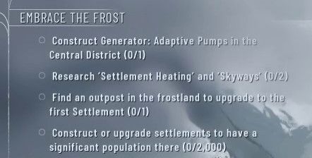 Напротив же, игроки, которые выбирают «Приспособьтесь к холоду», потратят Главу 2 на изучение тонкостей новой механики: создание Поселения в Морозных Землях. Говоря вкратце об этой механике, она сосредоточена на использовании Подвесных дорог в Frostpunk 2 для соединения производящих ресурсы аванпостов в Морозных Землях с Нью-Лондоном. Затем игроки могут улучшить подключенный аванпост до Поселения, действие, которое увеличивает выход ресурсов локации, но требует отправки туда некоторого населения.
