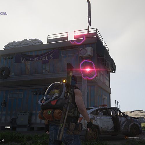 ![]() | ![]() | 4990, -6456 | Идите по дороге к югу от химического завода Сазерленда. На крыше здания около ветряных турбин, на ней написано «Стервятники». Обойдите здание и найдите лестницу, ведущую на крышу. |