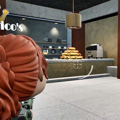 ![]() | Выйдите из Frederico's и поверните направо, продолжая движение по главной улице. За зданием с бананами вы увидите здание Flaming Tiki. Выстрелите в замок на двери, чтобы сломать его, и войдите. Поднимитесь по лестнице, и вы найдете кучу хот-догов на столе. |