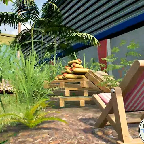 ![]() | От того места, где вы нашли предыдущую кучу хот-догов, спрыгните вниз со второго этажа Flaming Tiki. Идите направо и продолжайте идти вперед. Вы достигнете области, выложенной бамбуком. Войдите в эту область, и вы найдете кучу хот-догов, спрятанную в траве с правой стороны. |