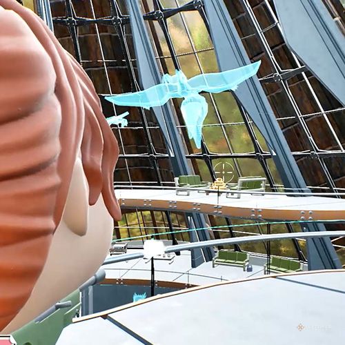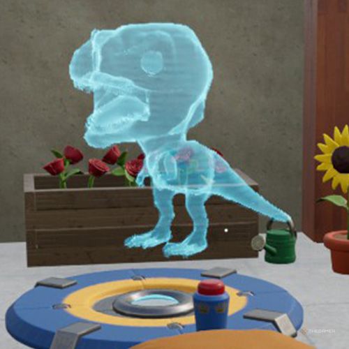 ![]() | Выходите из здания Инновационного центра. Поверните направо, и вы увидите первую голограмму. Эту голограмму нужно изменить на крылатого динозавра. (Дилофозавр) |