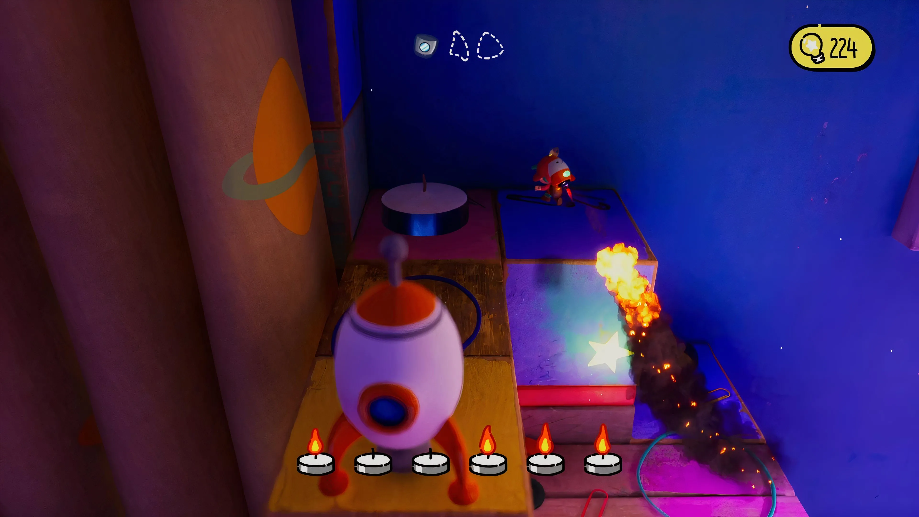 | 5 | ![]() | Двигайтесь прямо от предыдущей свечи и используйте свой реактивный ранец, чтобы лететь к прямоугольному желтому блоку, который вы можете толкнуть на другую сторону. Это создаст платформу, на которой вы сможете стоять. Идите направо и летите наверх, чтобы найти пятую свечу. |
