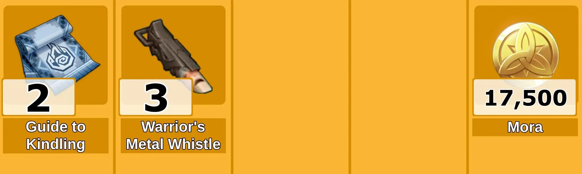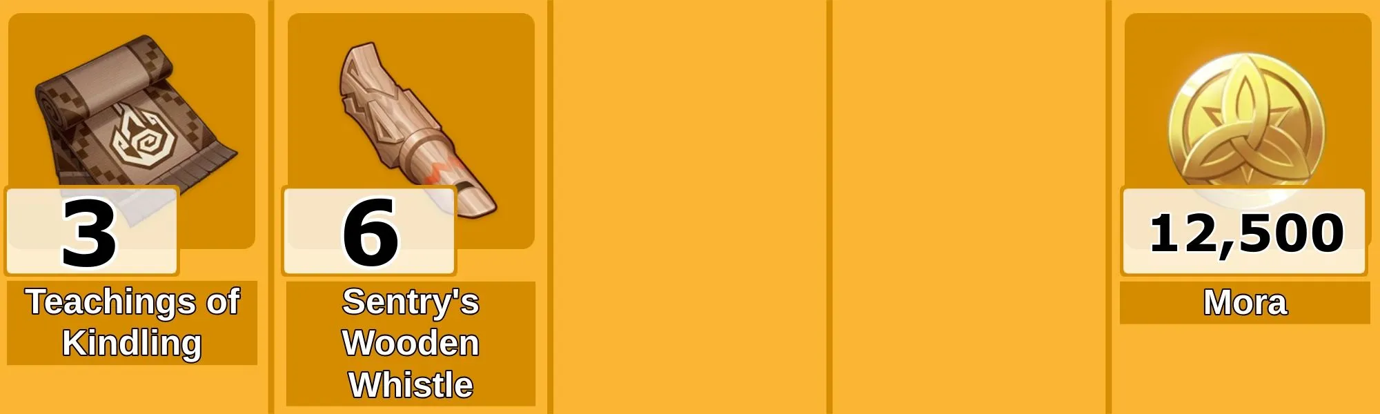 | 1-2 | 3x Учения о «Сжигании» | 6x Деревянный свисток дозорного | - | - | 12,500 |