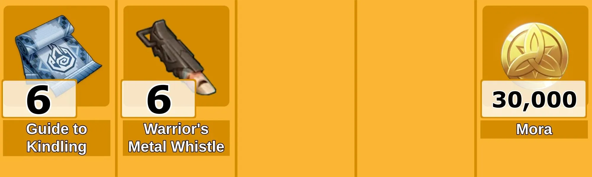 | 4-5 | 6x Указания о «Сжигании» | 6x Металлический свисток воина | - | - | 30,000 |