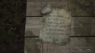 Направляйтесь в аптеку, протиснувшись через щель в Комнате отдыха, и выходите в сад. Разберитесь с блуждающими лежащими фигурами и отправляйтесь в бассейн. Двойные двери в конце бассейна позволяют вам попасть в кабинет директора, где вы можете найти Записку с новым кодом на доске объявлений. Вернитесь на сестринский пост и введите код 3578 (легкий и стандартный режим) или 7456 (сложный режим). Внутри поста вы можете открыть дверь в процедурный кабинет, где в ванне можно найти заплесневелую рентгенограмму.