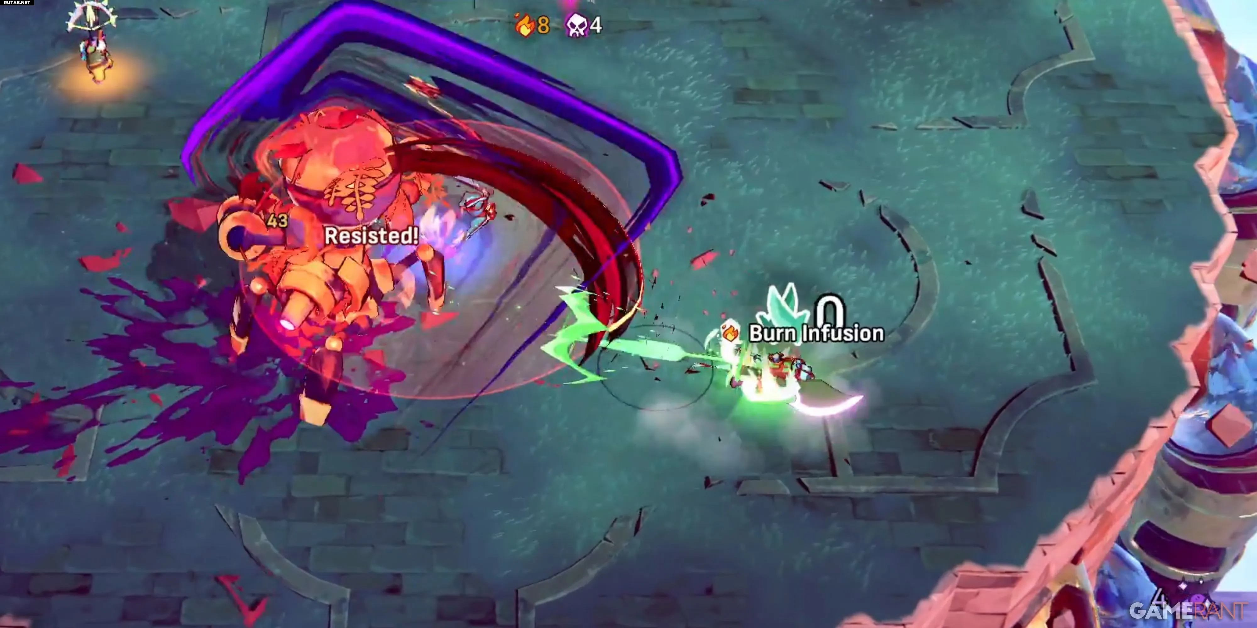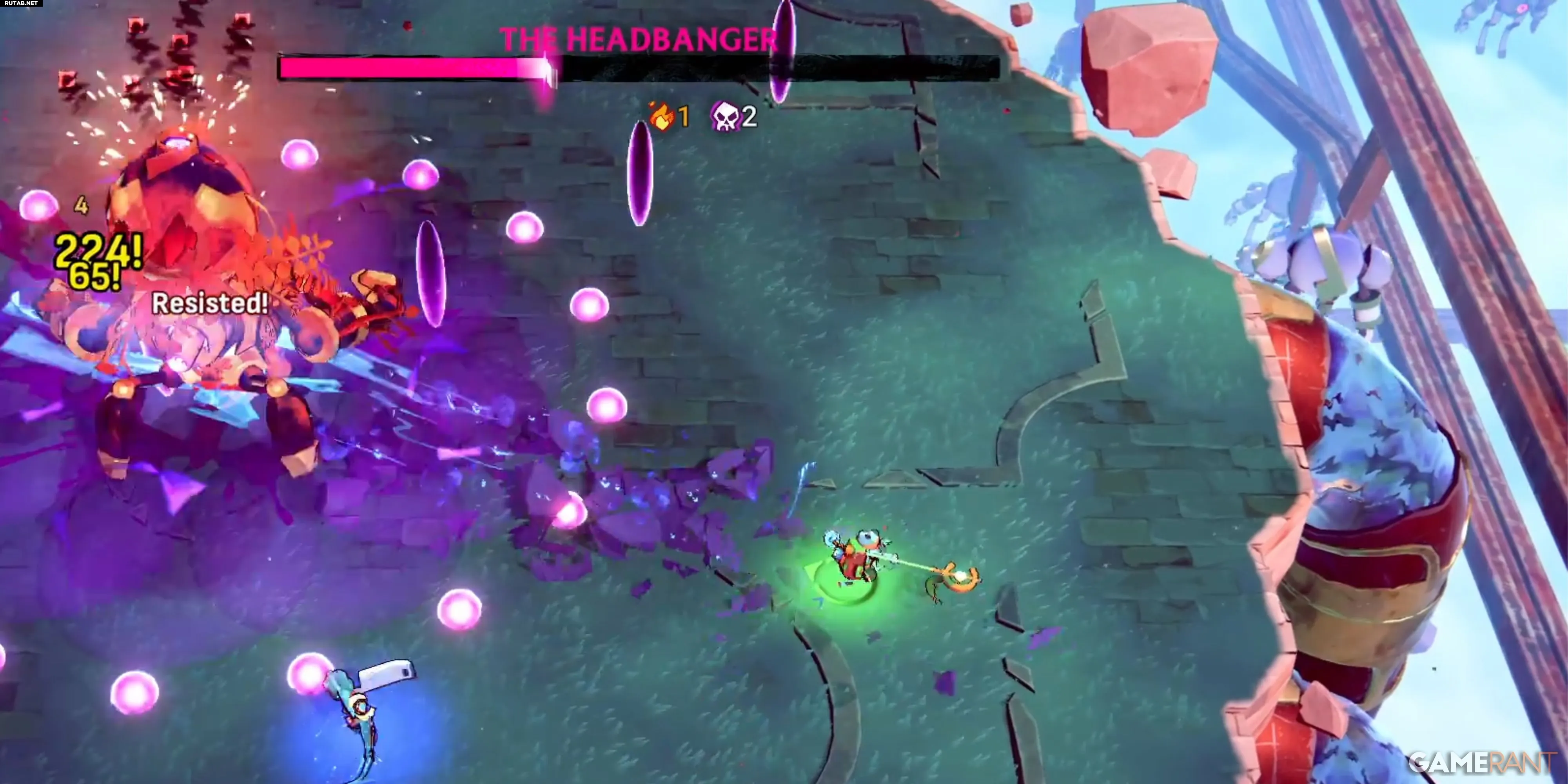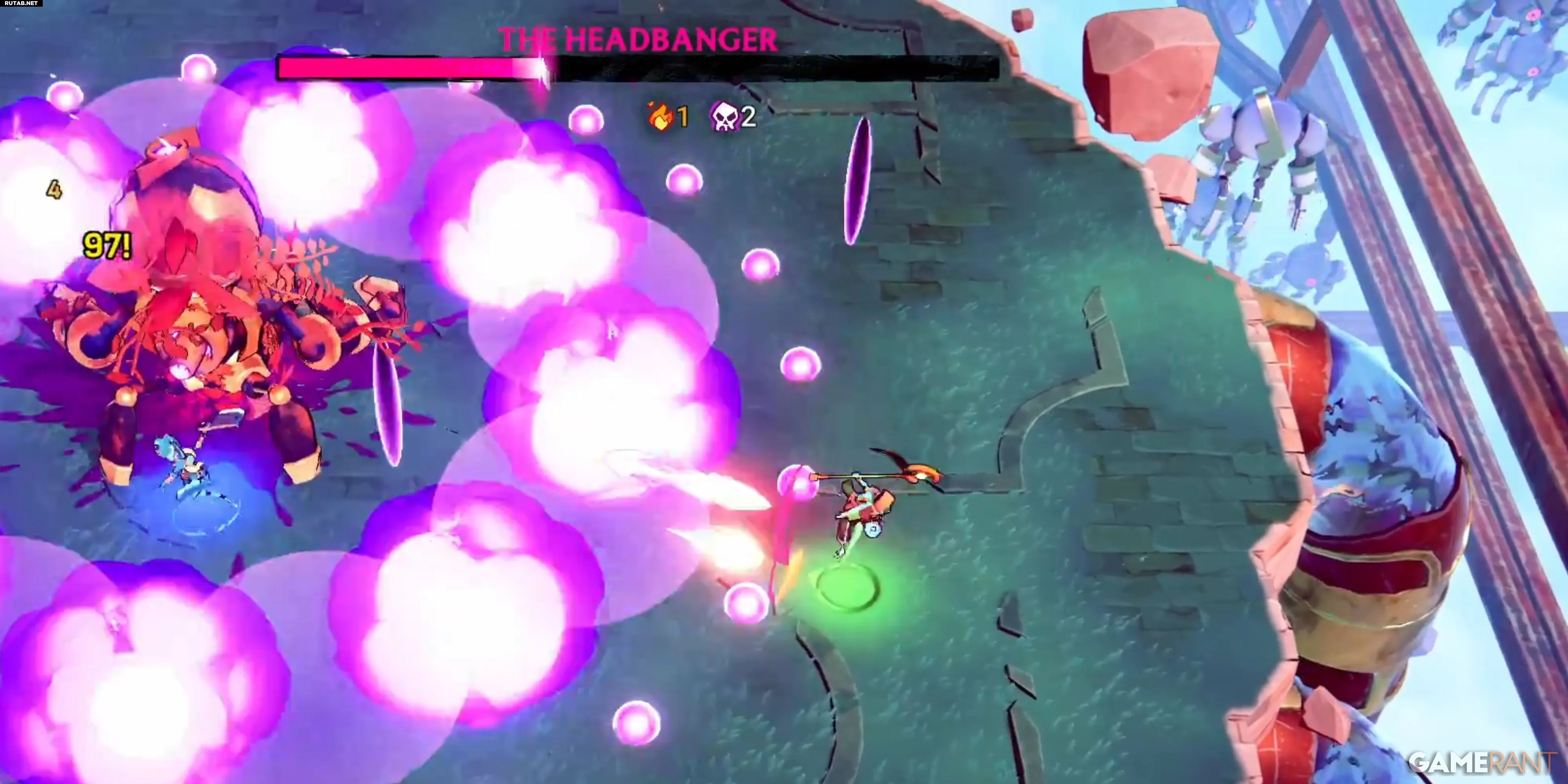 Как только игроки подойдут достаточно близко, экран на секунду потемнеет, прежде чем они вступят в схватку с The Headbanger. Большая полоса здоровья, появляющаяся на экране, является знаковой чертой битв с боссами, которая дает игрокам знать, что их ждет тяжелая битва. Игроки захотят приобрести правильные улучшения для своих забегов и знать, какое снаряжение им поможет.