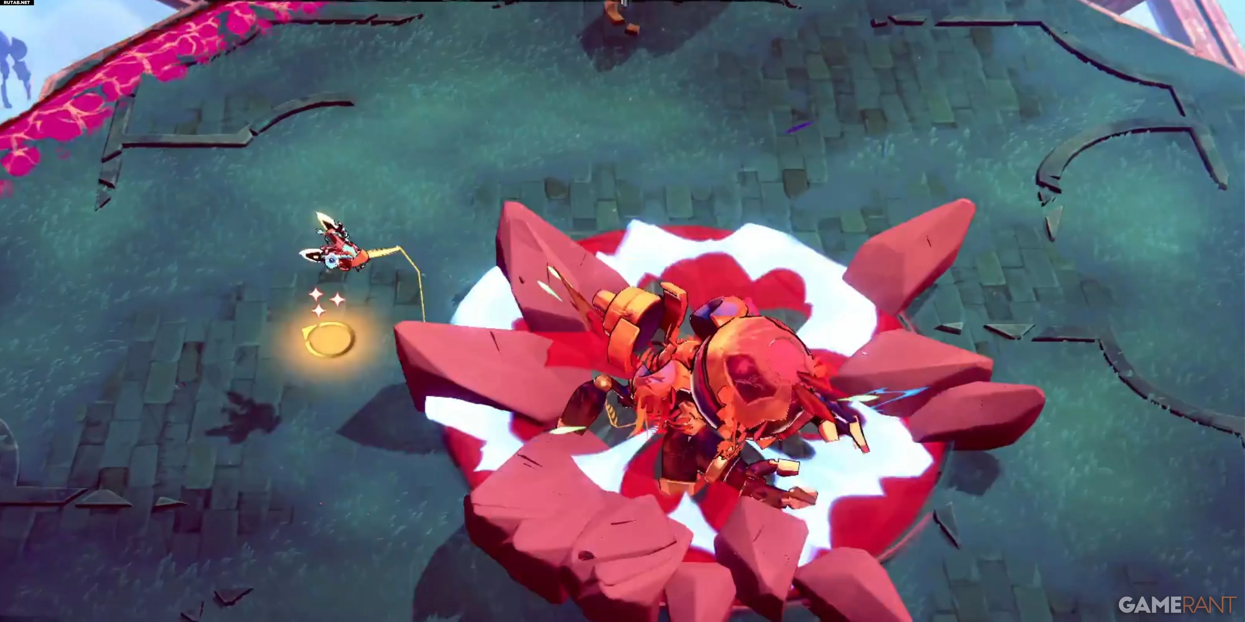 Этот босс время от времени подпрыгивает в воздух. Когда это происходит, игрокам нужно немедленно убежать, так как он вскоре рухнет. Это заставит землю под ним разлететься вверх.