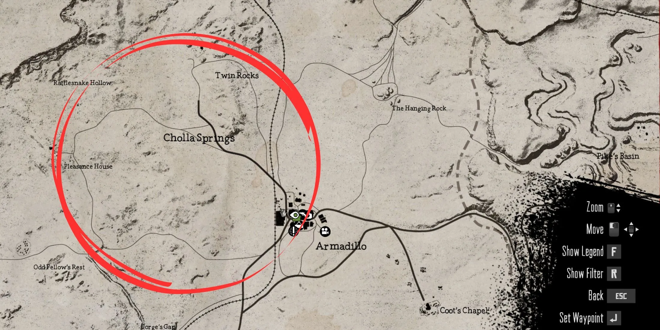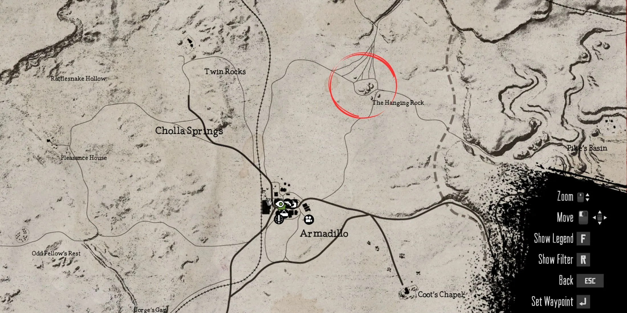 | Охотник за сокровищами №2 | Чтобы получить первый сундук с сокровищами в Red Dead Redemption, отправляйтесь к Висячей скале — она расположена над Армадилло и справа от Чолла Спрингс. Обойдите выступ, пока не увидите просвет с кустами. Сокровище спрятано там, рядом с меньшим камнем. | Золото Родса ($100) | ![]() |