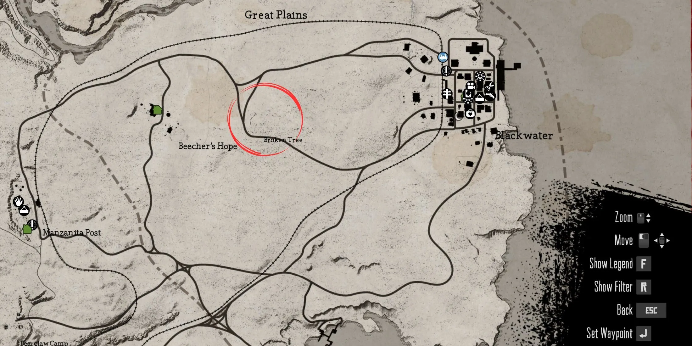 | Охотник за сокровищами №9 | Для предпоследнего сундука с сокровищами в Red Dead Redemption отправляйтесь в Beecher's Hope. Идите в правую сторону треугольной дорожки на карте, справа от надписи Beecher's Hope при увеличении масштаба. Сокровище зарыто рядом с каменным забором у гигантского дерева. | Золото Пикетта ($400) | ![]() |
