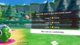 Белый шар дает игроку 1 монету, зеленый шар дает 5 монет, синий шар дает 15 монет, а красный шар дает 30 монет. Это событие черпает вдохновение из Lottery Shop в Mario Party 4, похожей мини-игре, основанной на удаче.