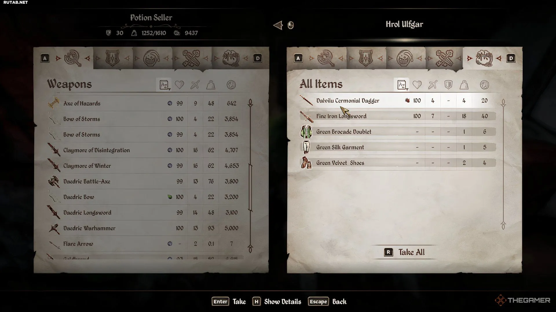 - Украдите «Церемониальный кинжал Далвилу» в доме Нивана и «Семейное кольцо Ульфгара» в доме Хрола.