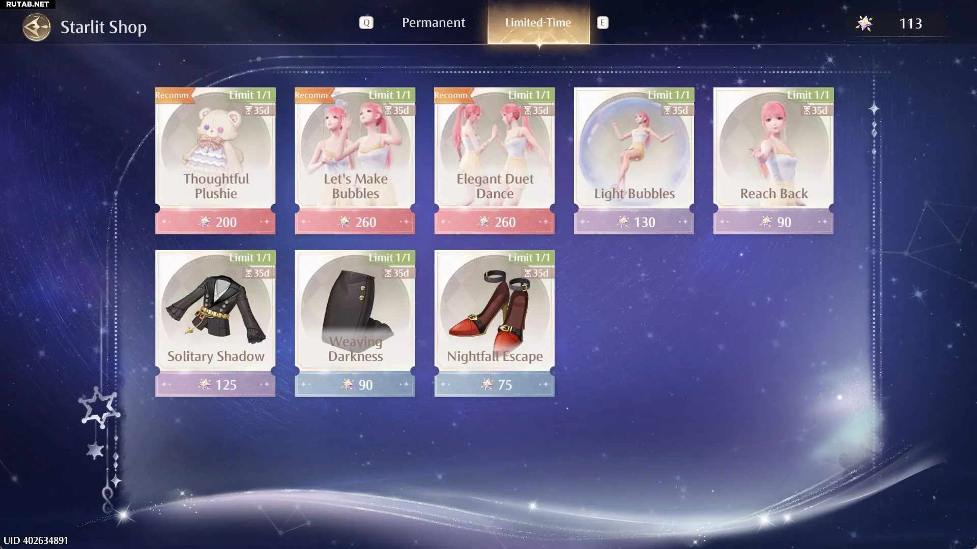 Starlit Crystals можно обменять в магазине «Звездного Света» на позы и предметы. Обратите внимание на раздел «Ограниченные предложения»: