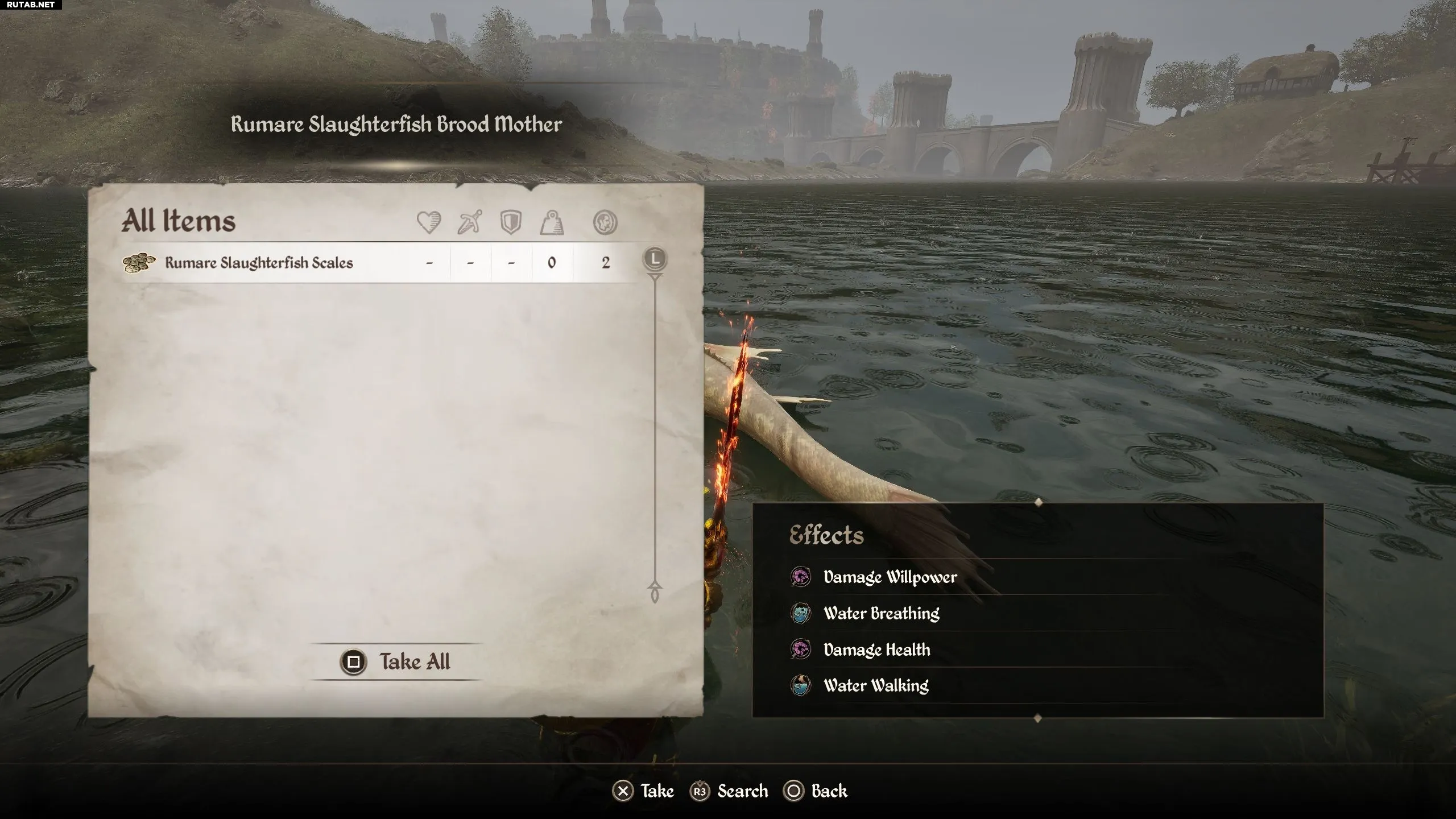 - Атакуйте рыбу и заберите чешую.