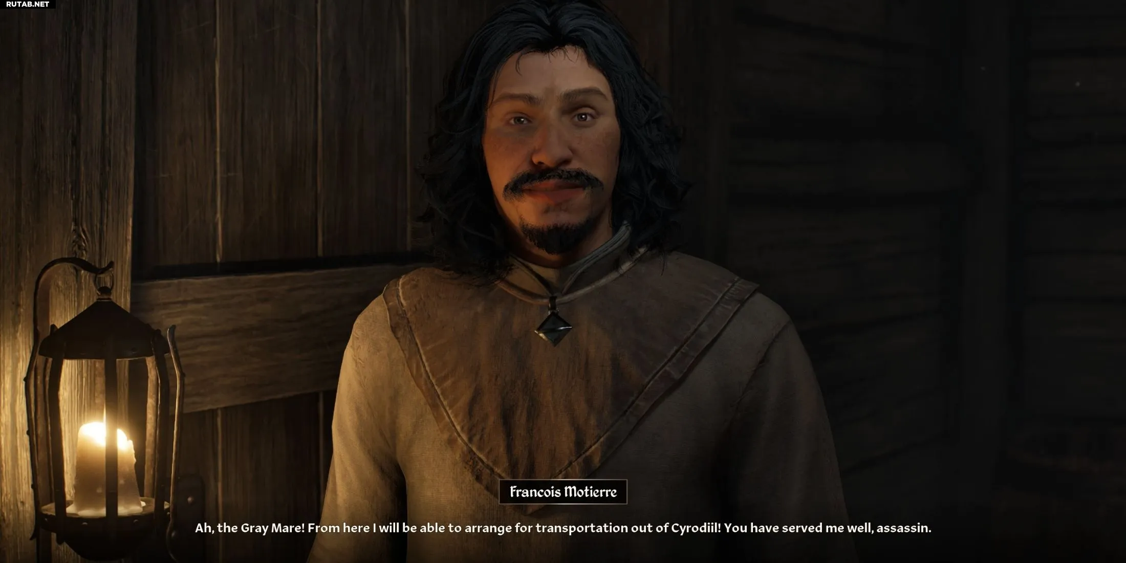 Войдите в дом (может потребоваться взлом замка) и дождитесь аргонианского убийцу «Скрывающего Сердце». Когда он зайдёт, ударьте Франсуа клинком, чтобы инсценировать его смерть. После этого покиньте город и подождите 24 часа, пока тело не перенесут в «Подземелье Часовни Стендарра».