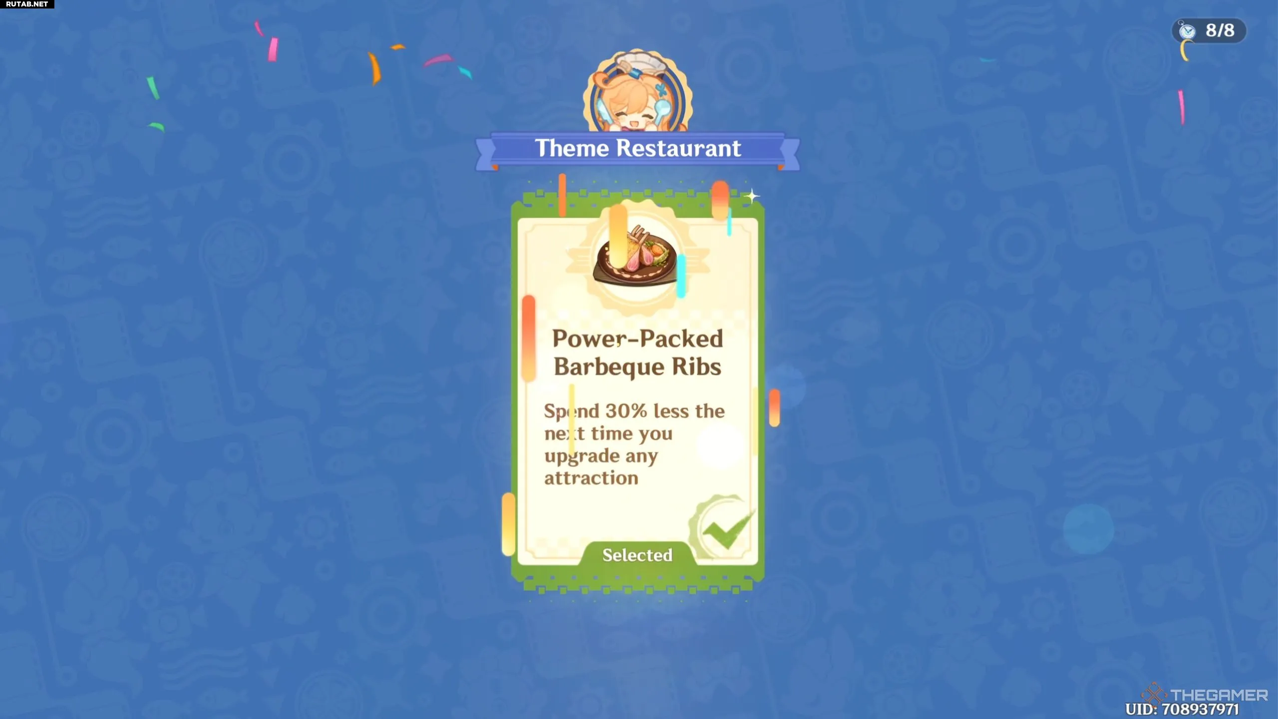 - В начале цикла выбирайте специальное блюдо для временных баффов (например, снижение стоимости улучшений).