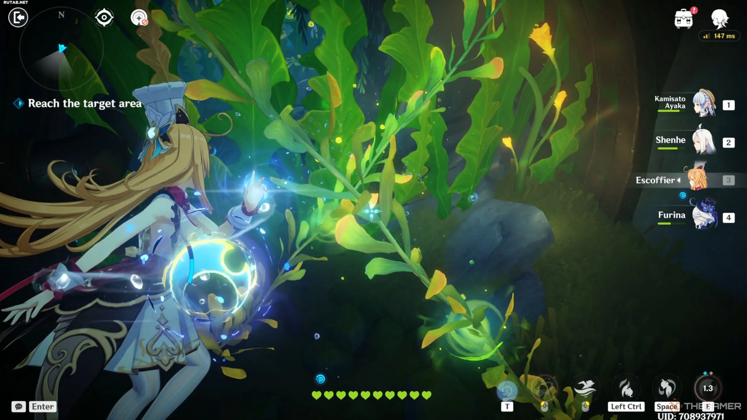 - Используйте силу водного существа, чтобы ударить по светящимся точкам на лозе (в замедлении).
