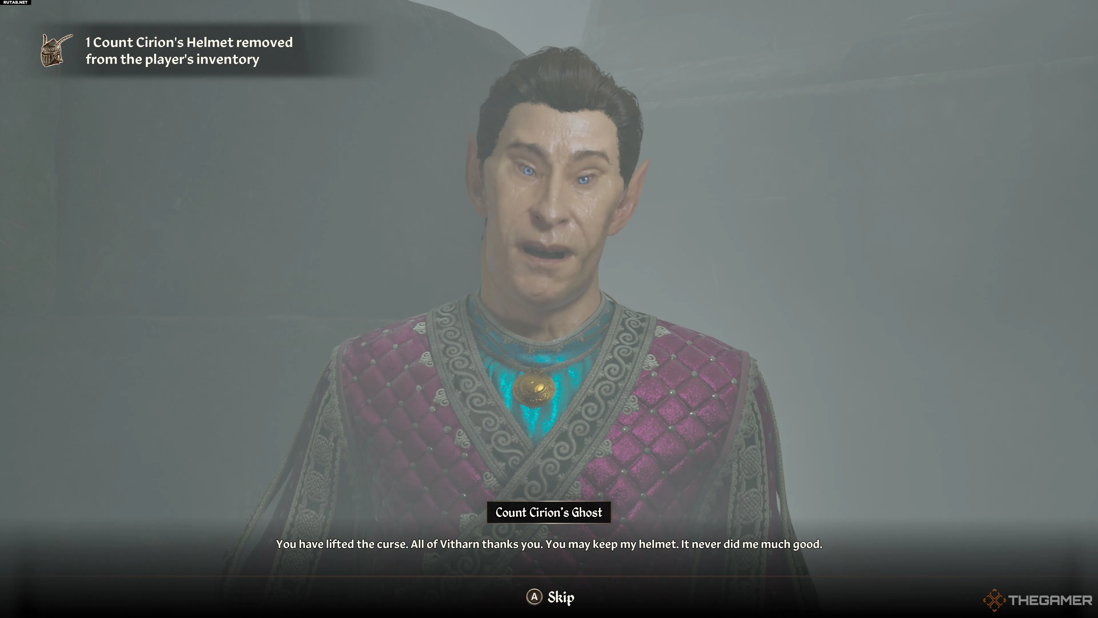 Внутри поговорите с «Призраком графа Сириона». Выберите диалоговый вариант «Я не хотел(-а) оскорблять», иначе он откажется помогать.