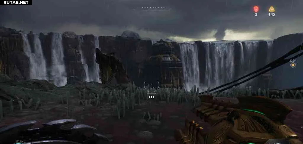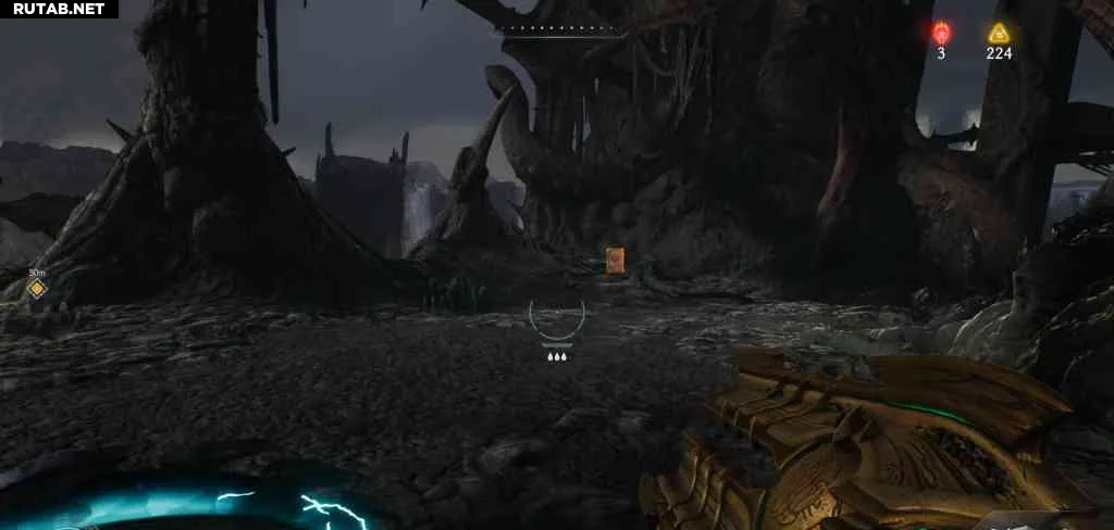 После получения Ballistic Force Crossbow и подъема на лифте, продвигайтесь, пока не подниметесь по пандусу. Спрыгните с уступа слева, чтобы приземлиться на более низкой площадке, где вы можете получить немного Золота за воротами.