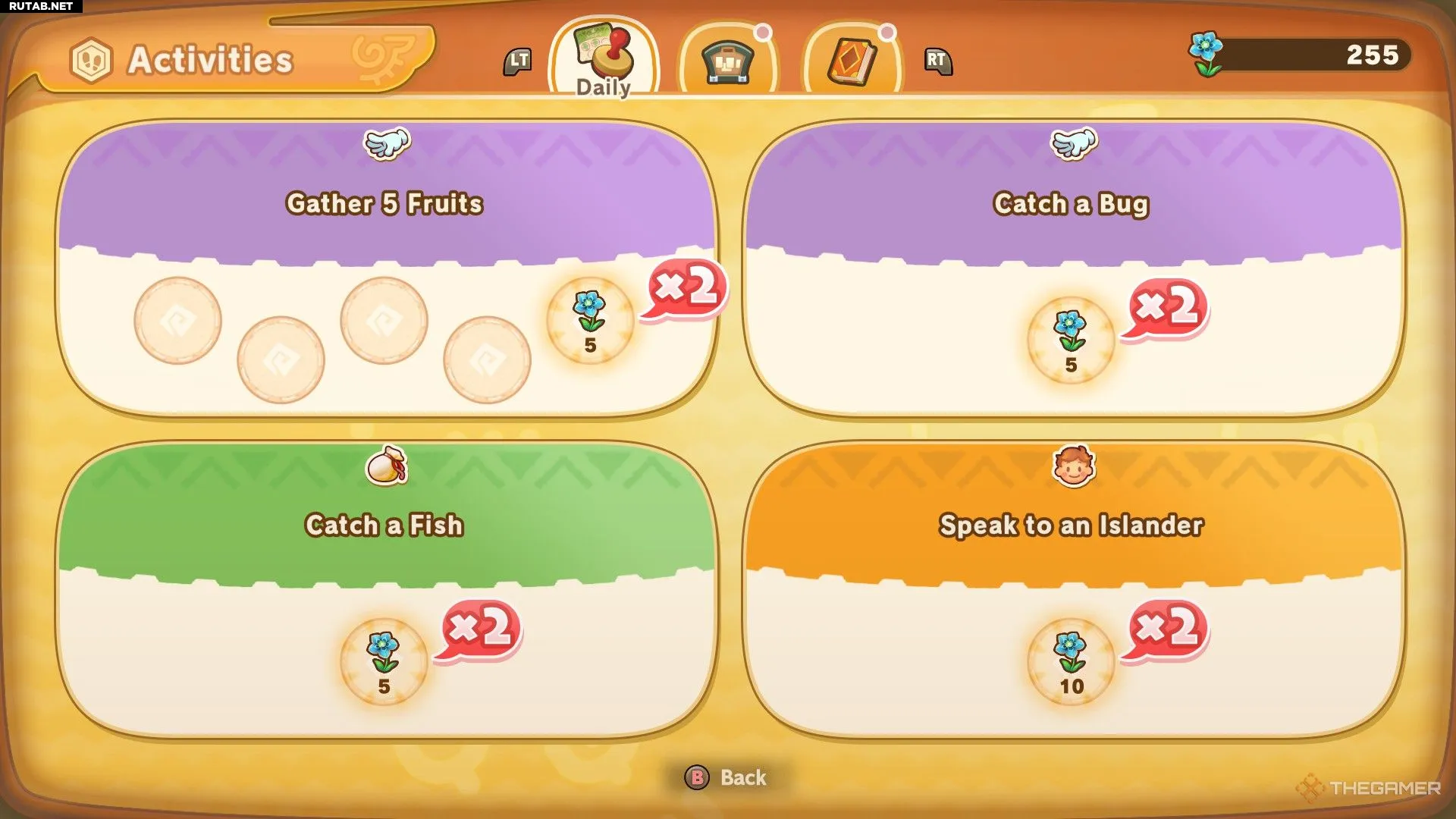 Проверяйте вкладку «Активности» в меню — простые задания тоже приносят цветы.