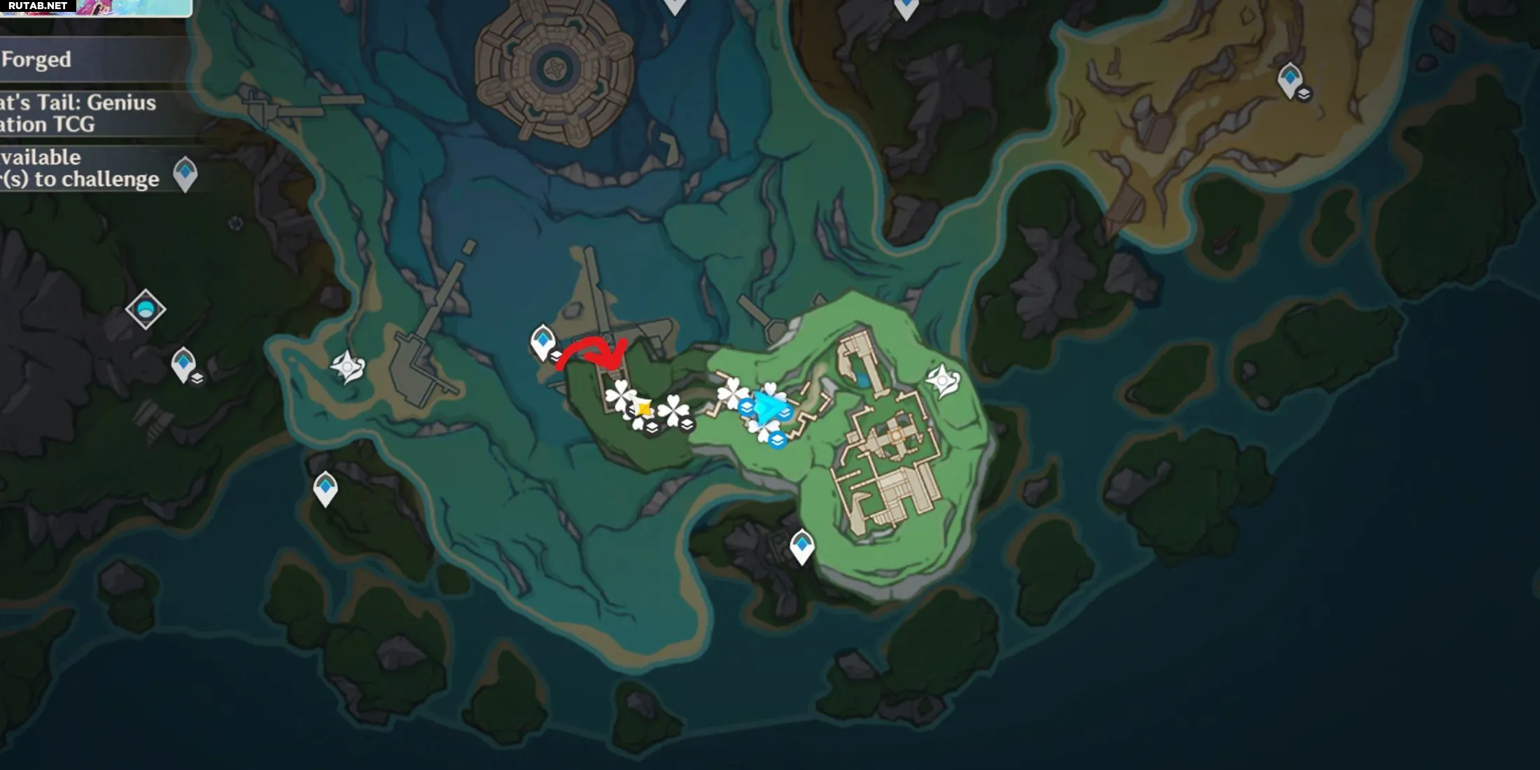 Статуя семи Архонтов в регионе Лиффи содержит несколько артефактов для сбора. После телепортации туда поверните направо и спрыгните с уступа вниз. Там вы увидите золотое колесо на земле — точка для исследования на нём даст вам несколько артефактов.