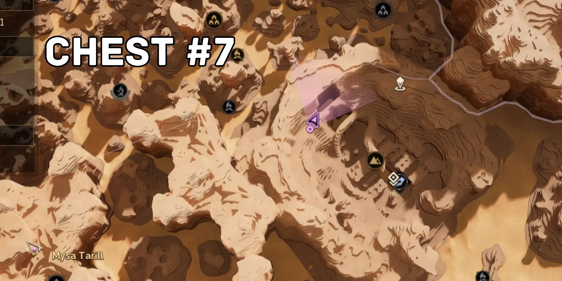 Хотя Карбидный лом появляется и в Руке Кидхра, точки его спарна там редкие и разбросанные, что делает поиски долгими. Мыс Тарилл — гораздо более удобное место, так как здесь больше точек спарна. Всего в Мысе Тарилл 13 мест, где можно найти Карбидный лом. Давайте разберём их подробнее.