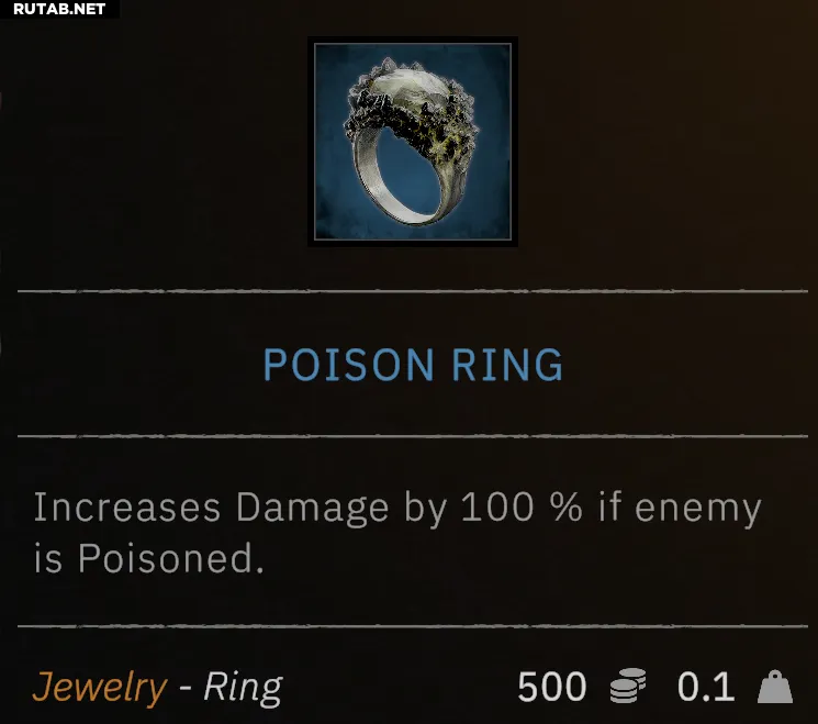 - Помогает накапливать яд для активации эффекта кольца