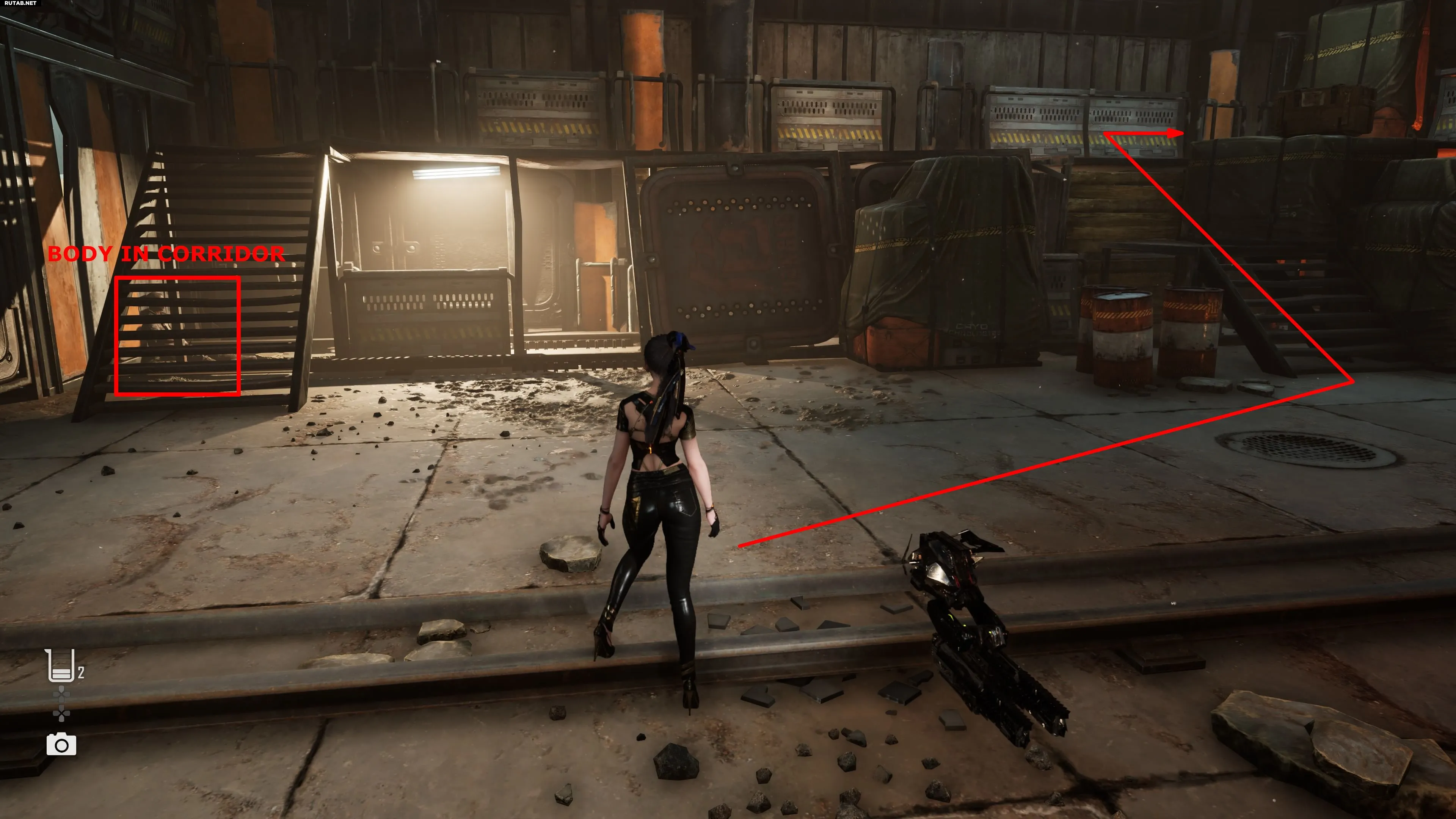 Продолжите движение после точки сохранения «Вход во временный арсенал», пока не попадете в затопленную зону. В дальнем конце правой стороны этой области игроки найдут небольшую возвышенную платформу — используйте доску рядом, чтобы запрыгнуть на нее. Ядро тела лежит на платформе.